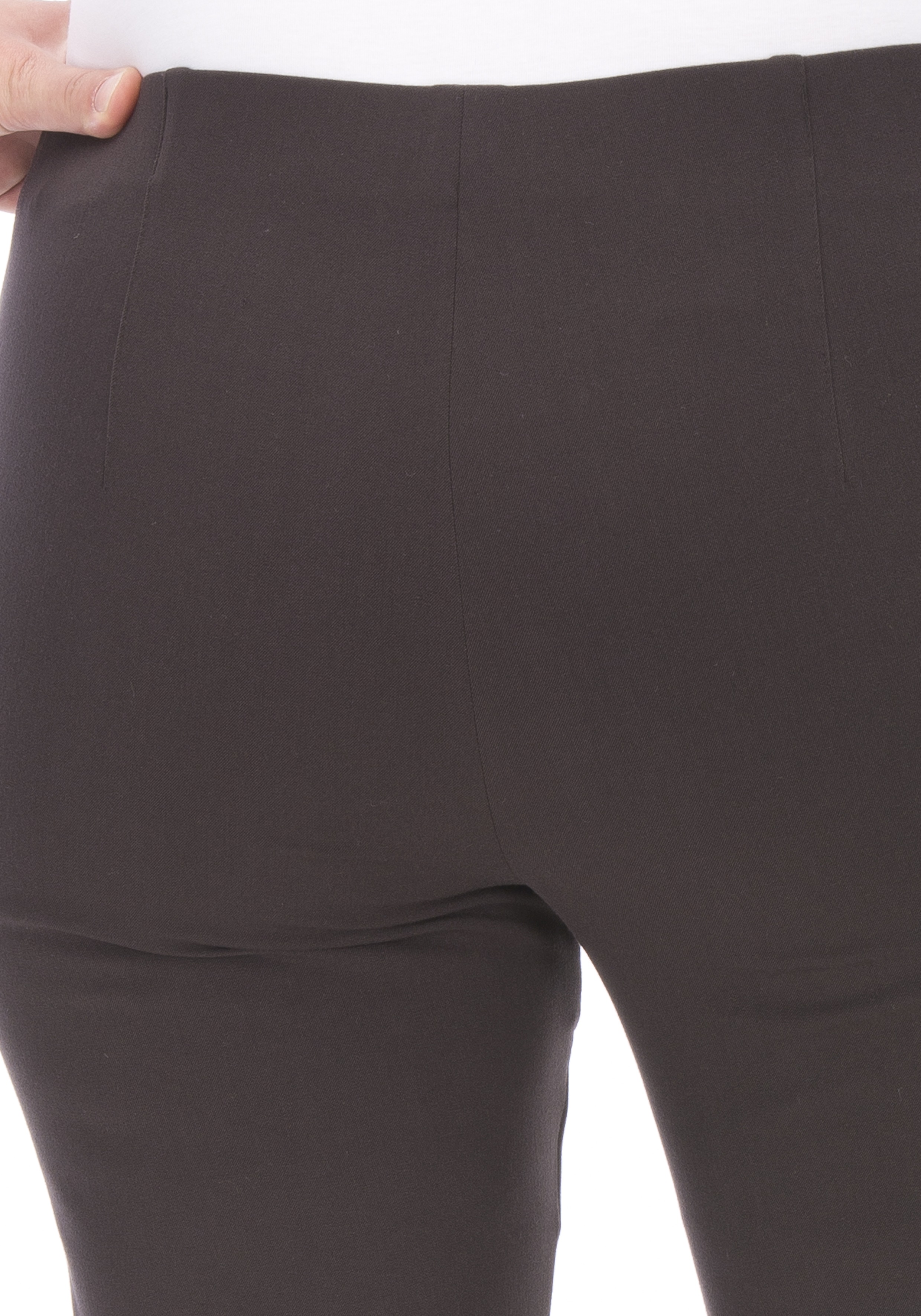 Die winterliche Viskose-Qualität dieser KjBRAND Hose Susie XS besticht durch eine hochwertige Kammgarnoptik in Bi-Stretch. Die damenhafte, auch bei reiferen Generationen, beliebte Stretch-Hose eignet sich durch den hohen Tragekomfort fürs Büro, den Alltag, aber auch Festlichkeiten. Die ausgeklügelte Form mit sehr elastischem Rundum-Gummibund überspielt geschickt die Bauchpartie und passt sich der Figur ideal an.