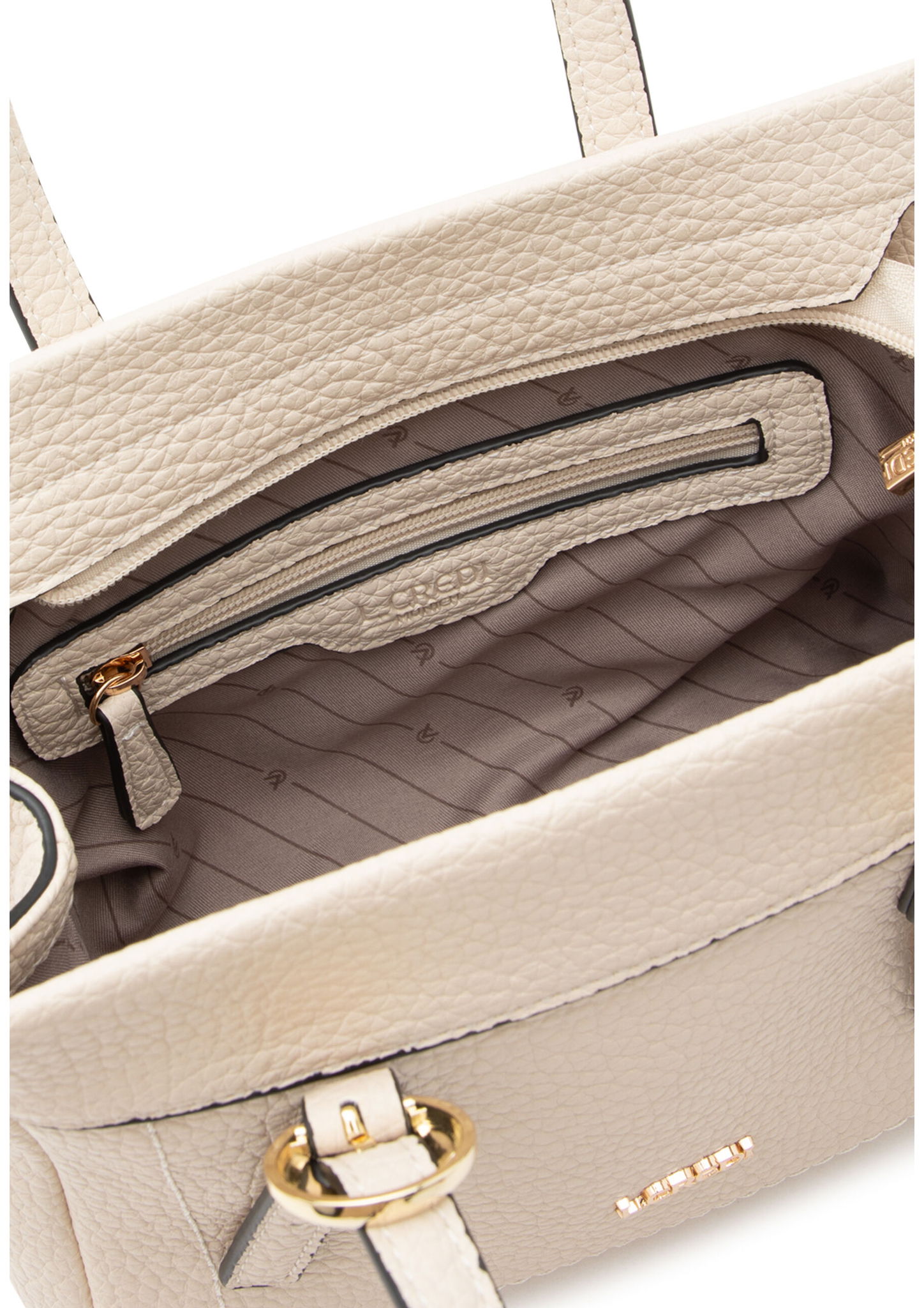 • Die Henkeltasche RAMIRA in White Sand begeistert mit Lederimitat in markanter Elephant-Skin-Narbung. Sie hat ein kompaktes Format und einen Reißverschluss.