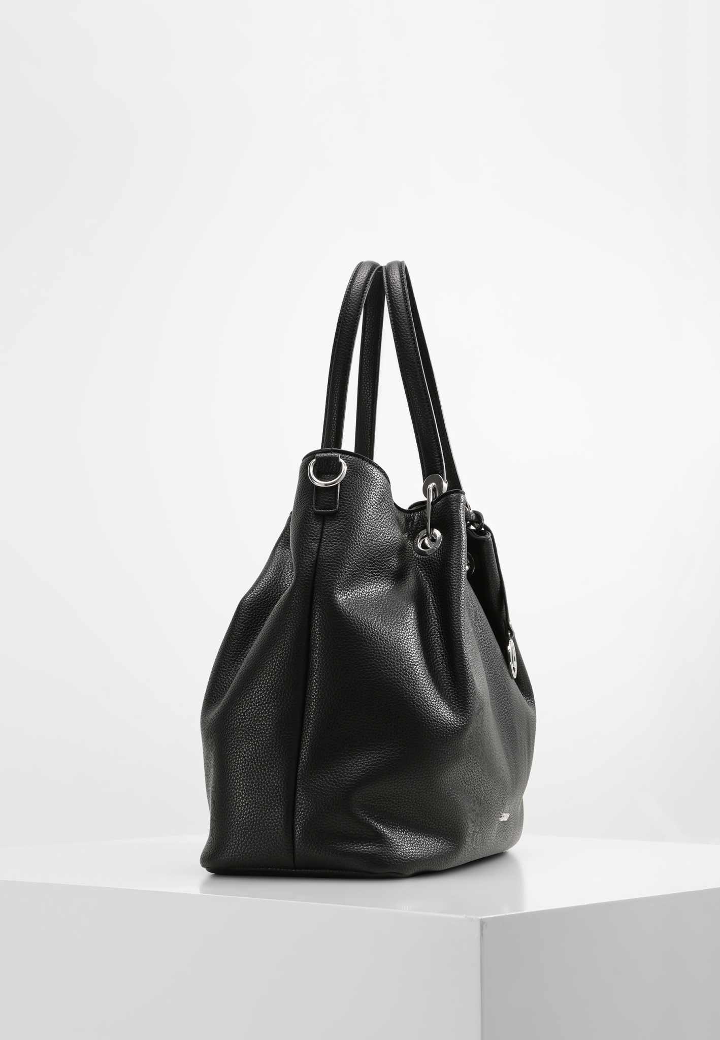 Perfekt für große Einkaufstouren: Der Shopper EBONY besticht mit elegantem Look und hält viel Platz bereit. Sein genarbtes Kunstleder, ein Anhänger und ein kleines Logo verleihen ihr ein stilvolles Design. Ein Reißverschlussfach außen und die Inneneinteilung mit Mittelfach, zwei Steckfächern und einem Reißverschlussfach sorgen schnell für Ordnung persönlicher Dinge. Mit dem anklippbaren Schultergurt ist EBONY auch bequem als Umhängetasche verwendbar.