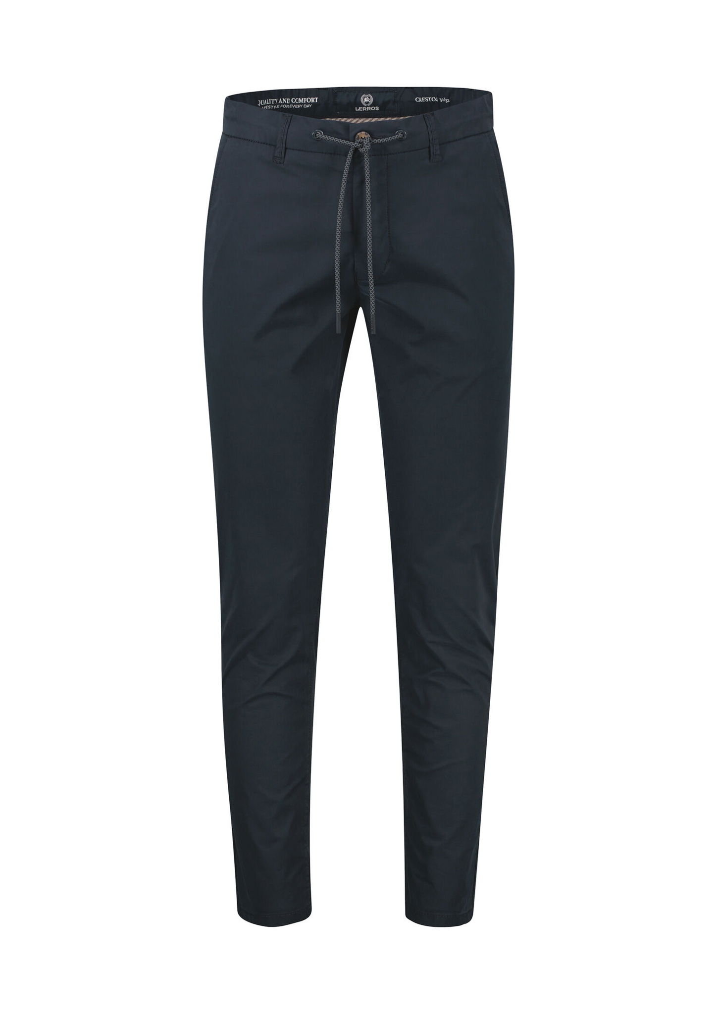 Leichte Chino mit Kordelzug kombiniert erstklassigen Tragekomfort mit sportivem Design. Die atmungsaktive Baumwolle mit Stretchanteil sorgt für ein angenehmes Hautgefühl, der legere Schnitt mit Tunnelzugbund für eine ideale Passform. Praktische Details wie seitliche Eingrifftaschen, zwei Gesäßtaschen und das dezente LERROS-Metall-Badge machen die Hose praktisch und raffiniert zugleich. Die LERROS Chino besticht mit einem lässigen Casual-Look und ist ein echtes Must-have für entspannte Tage.