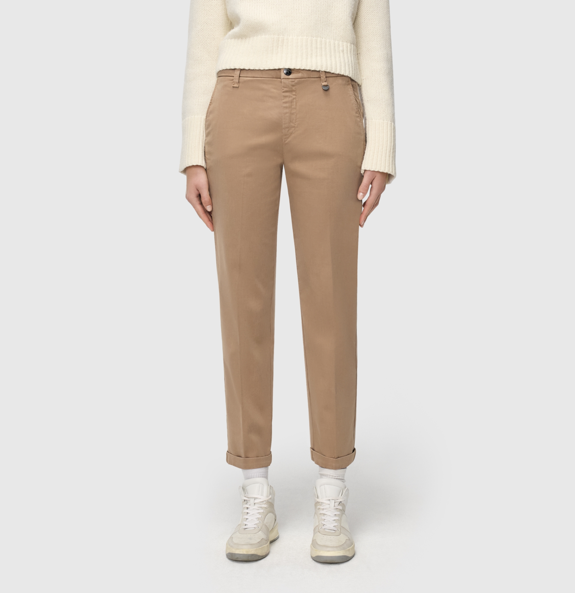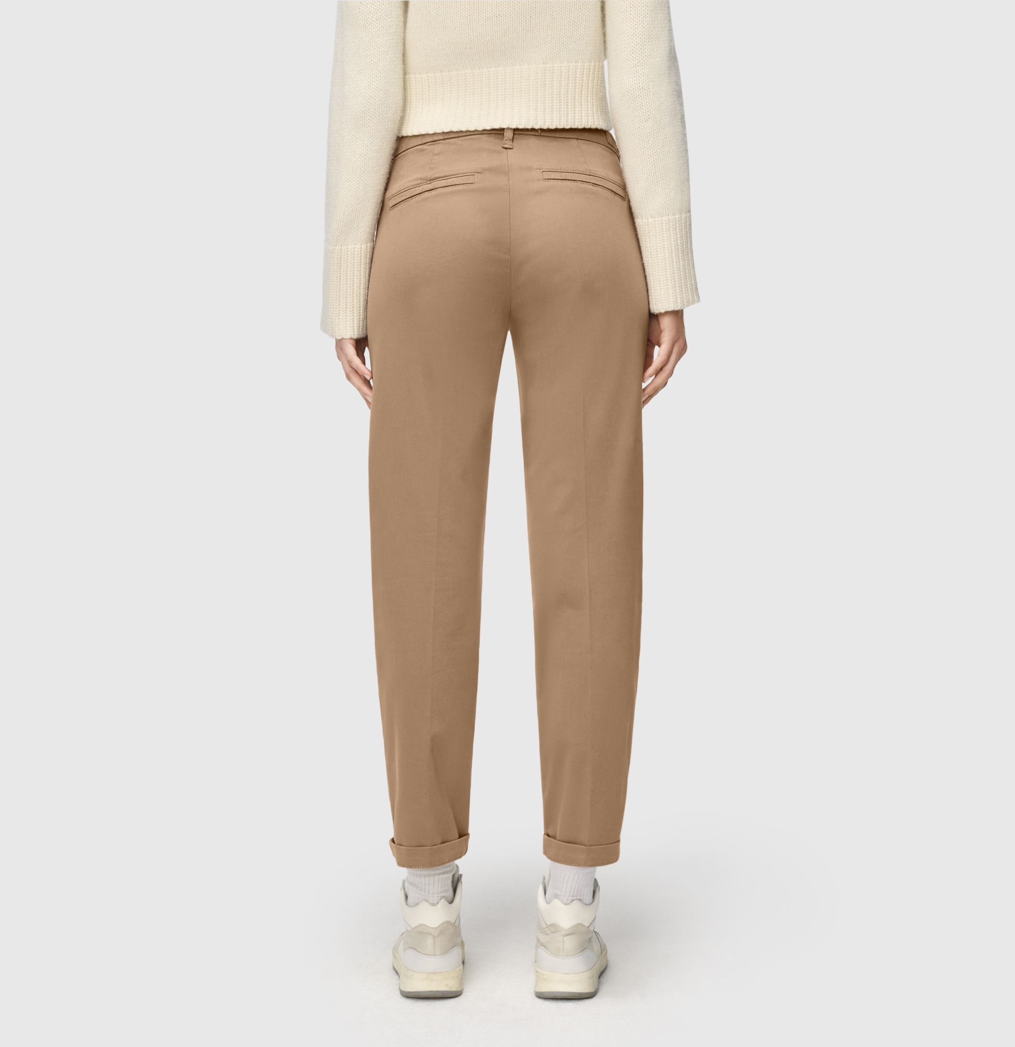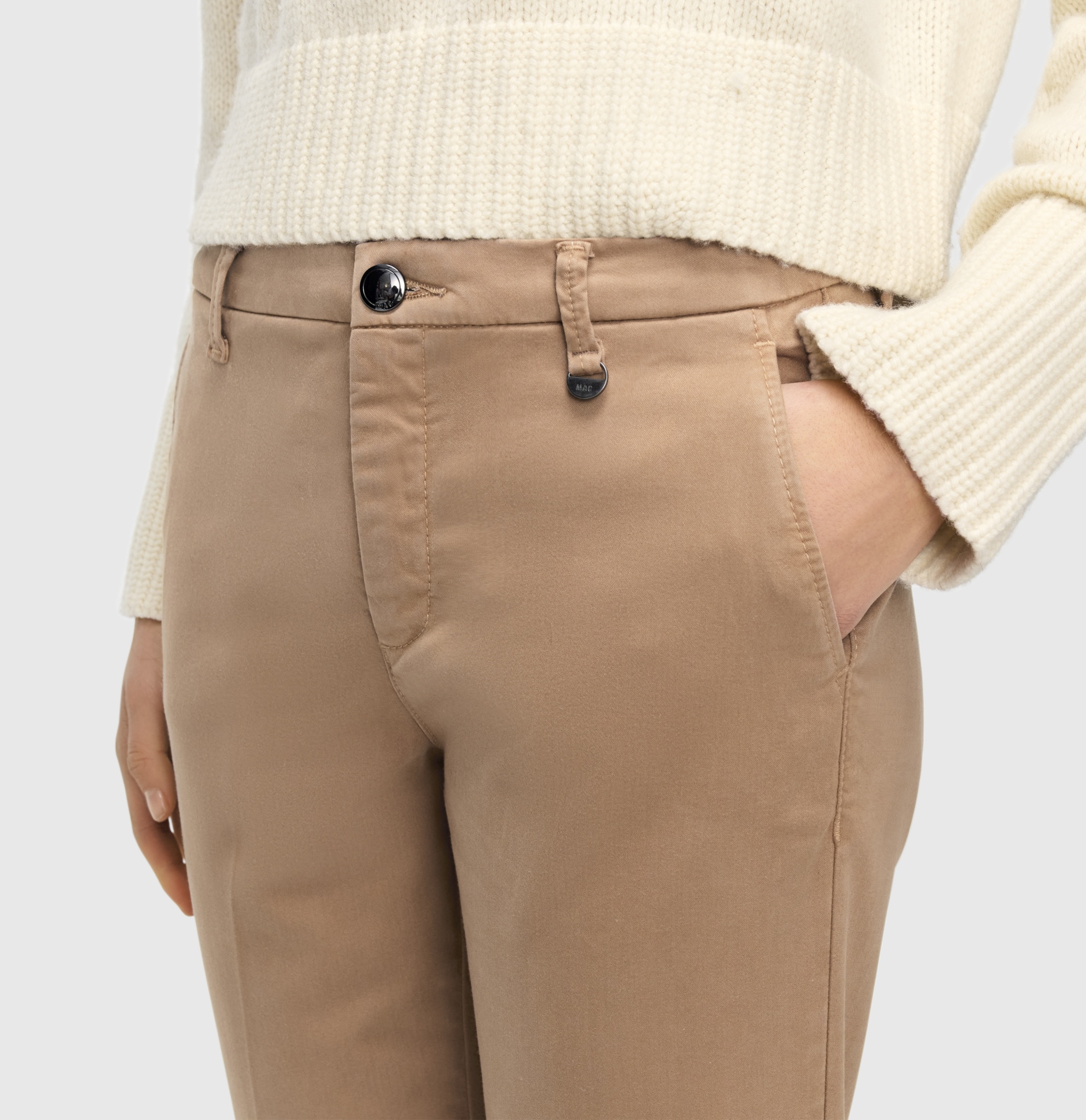- mittlere Leibhöhe, bequeme Taille, Chino-Modell