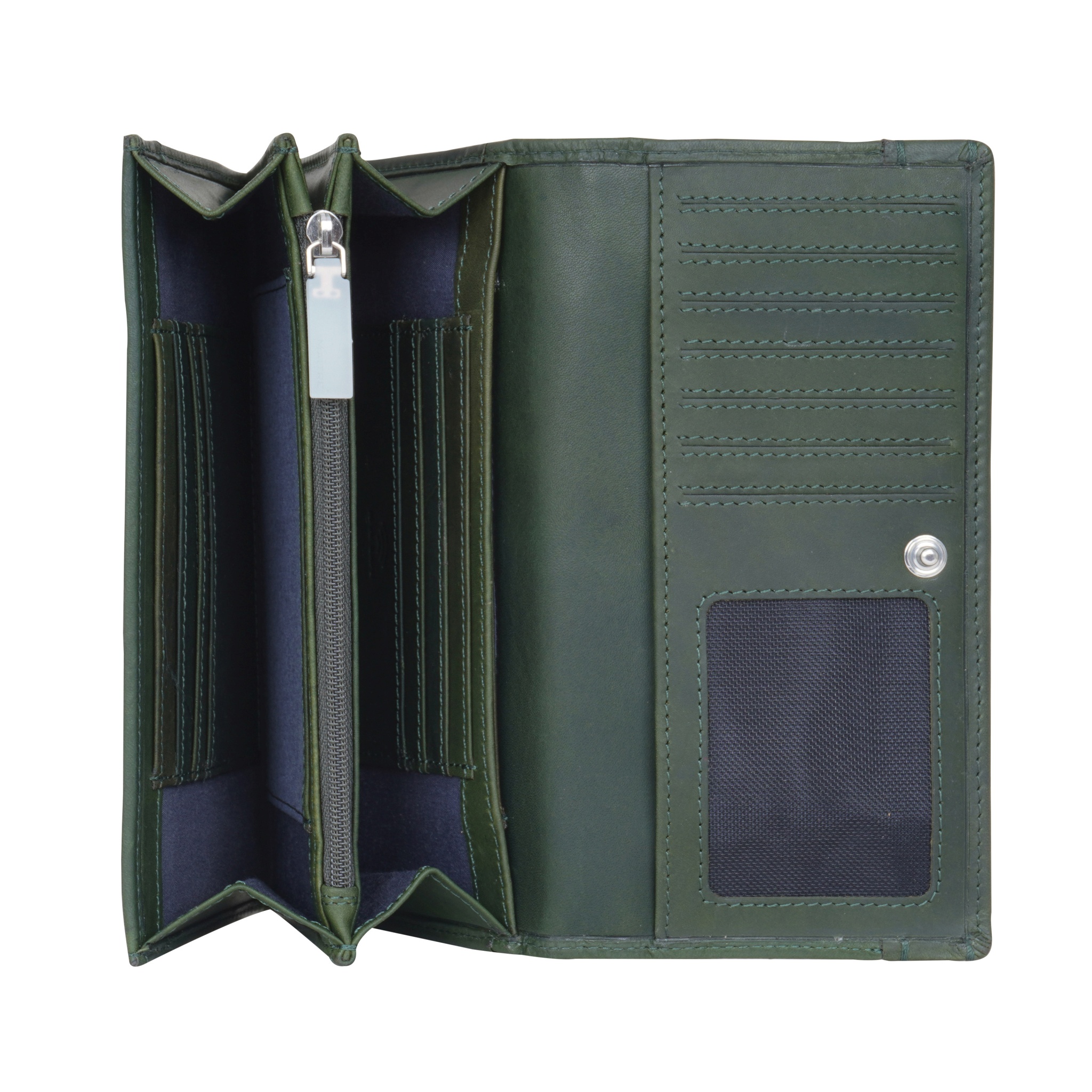 - Innen: dunkelblaues Innenfutter aus Textil, Münzgeldfach mit Reißverschluss, zwei Geldscheinfächer, fünfzehn Kreditkartenfächer, fünf Steckfächer, ein unterteiltes Reißverschlussfach