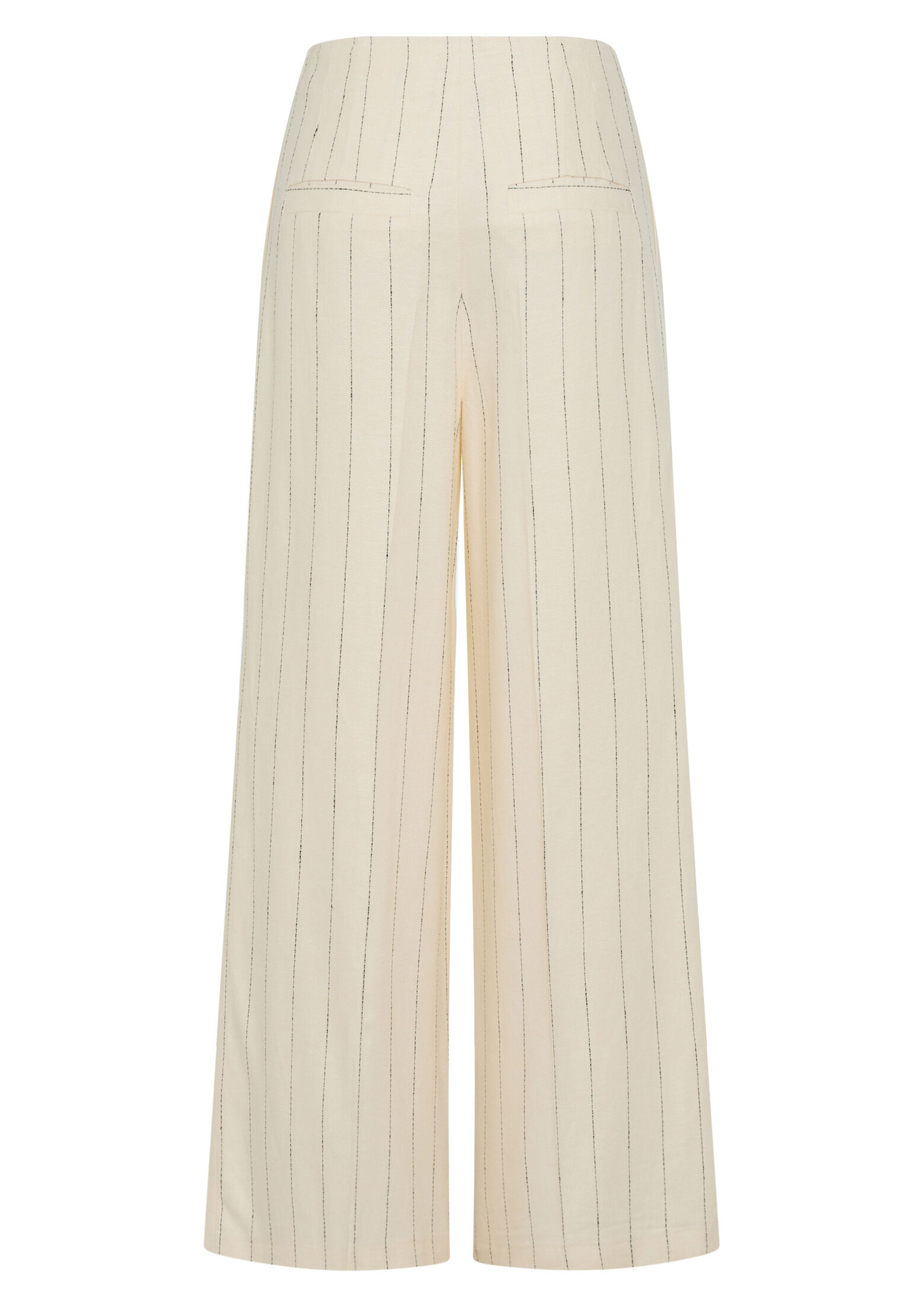 Diese Hose kombiniert eine sommerliche Viskose-Leinenmischung mit einem dezenten Streifenmuster und weiter Beinform. Die Bundfalten sorgen für Volumen, während Seitennaht- und Leistentaschen funktionale Akzente setzen. Ideal für einen modischen und zugleich edlen Auftritt.