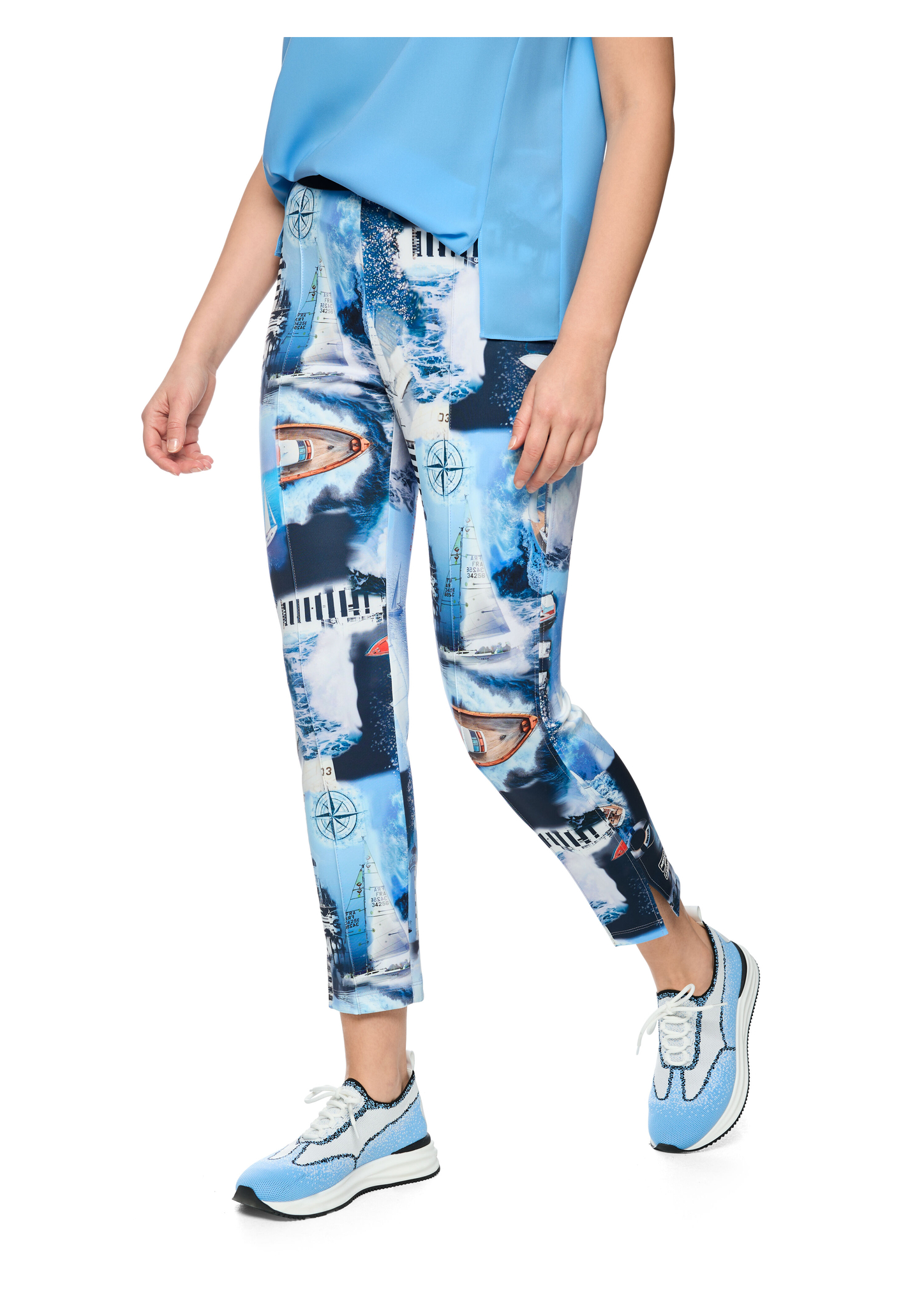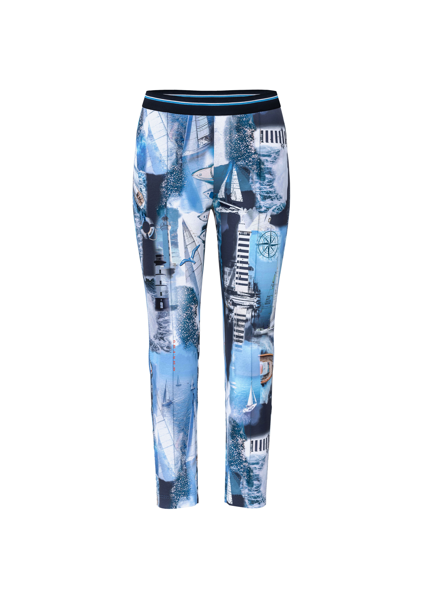 Leggings SOFIA mit Print|Enge Hose Modell SOFIA in 7/8-Länge aus elastischem Scuba-Jersey. Der all-over bedruckte Print verleiht der Hose einen maritimen Touch. Der bequeme Gummibund ist mit Streifen versehen. Eine mittige Paspelnaht auf der Vorderseite streckt optisch das Bein. Modern, komfortabel und figurbetont.|Figurnaher Schnitt|Elastisches Material|Gummibund|SOFIA - SLIM FIT - REGULAR - Beinlänge: 26""|Das Model ist 179 cm groß und trägt N3/38.