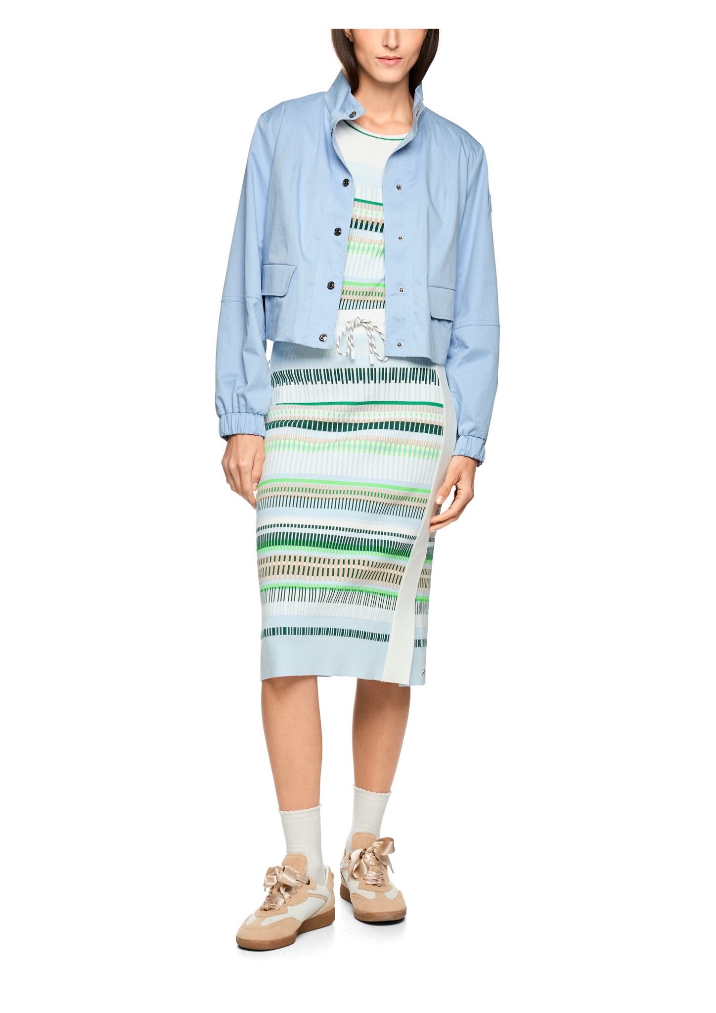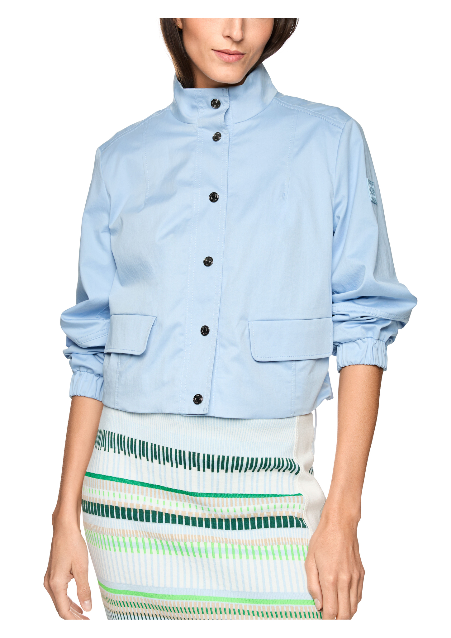 Kurze Baumwolljacke mit Netzfutter|Moderne kurze Jacke aus Baumwolle mit kleinem Elasthananteil für angenehme Bewegungsfreiheit. Mit leichtem Netzfutter, durchgängiger Druckknopfleiste und sportivem Stehkragen. Taschen mit Klappe, breite Gummibündchen und Tunnelzüge am rückseitigen Saum sorgen für perfekten Sitz und stylische Akzente.|Kurze Form|Druckknopfleiste|Stehkragen|Gummibündchen|Das Model ist 179 cm groß und trägt N3/38.