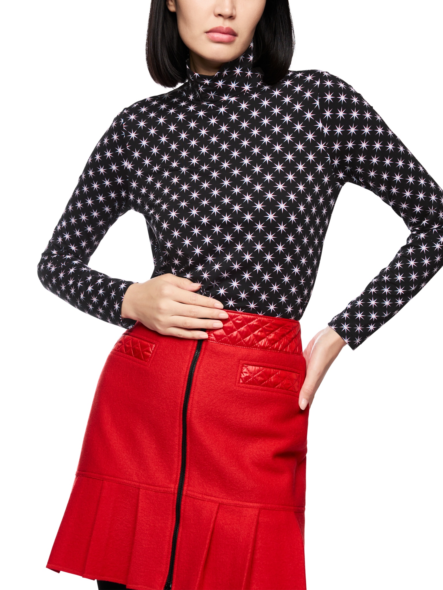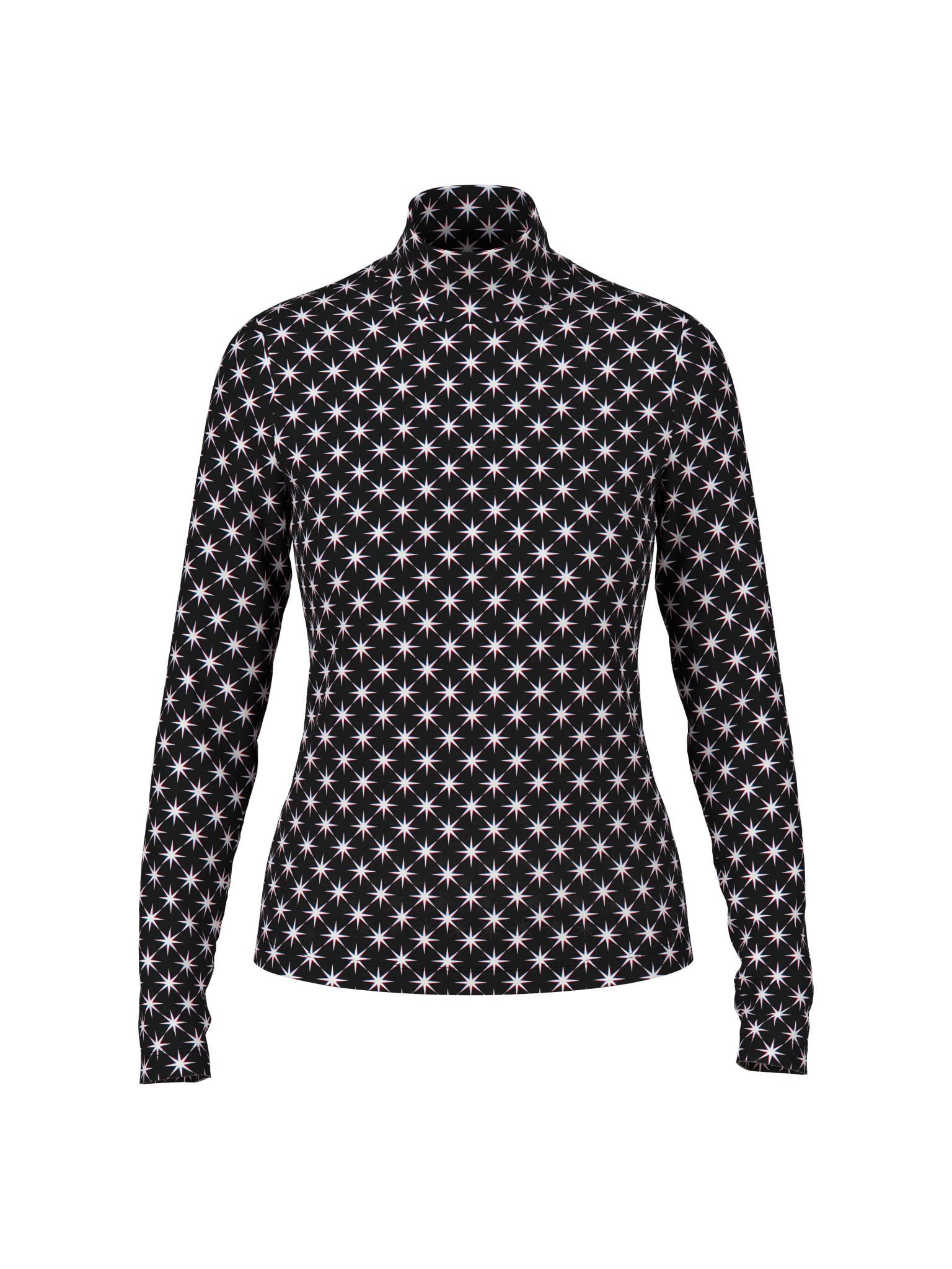 Enganliegendes Langarmshirt mit Rollkragen im Allover-Snowstar-Design der „Ski is the Limit“-Kollektion. Die körpernahe Passform und das leichte Material machen es ideal für Layering-Looks. Der auffällige Print sorgt für einen sportlich-modernen Look – perfekt als Unterzieher für winterliche Outfits mit Stil.