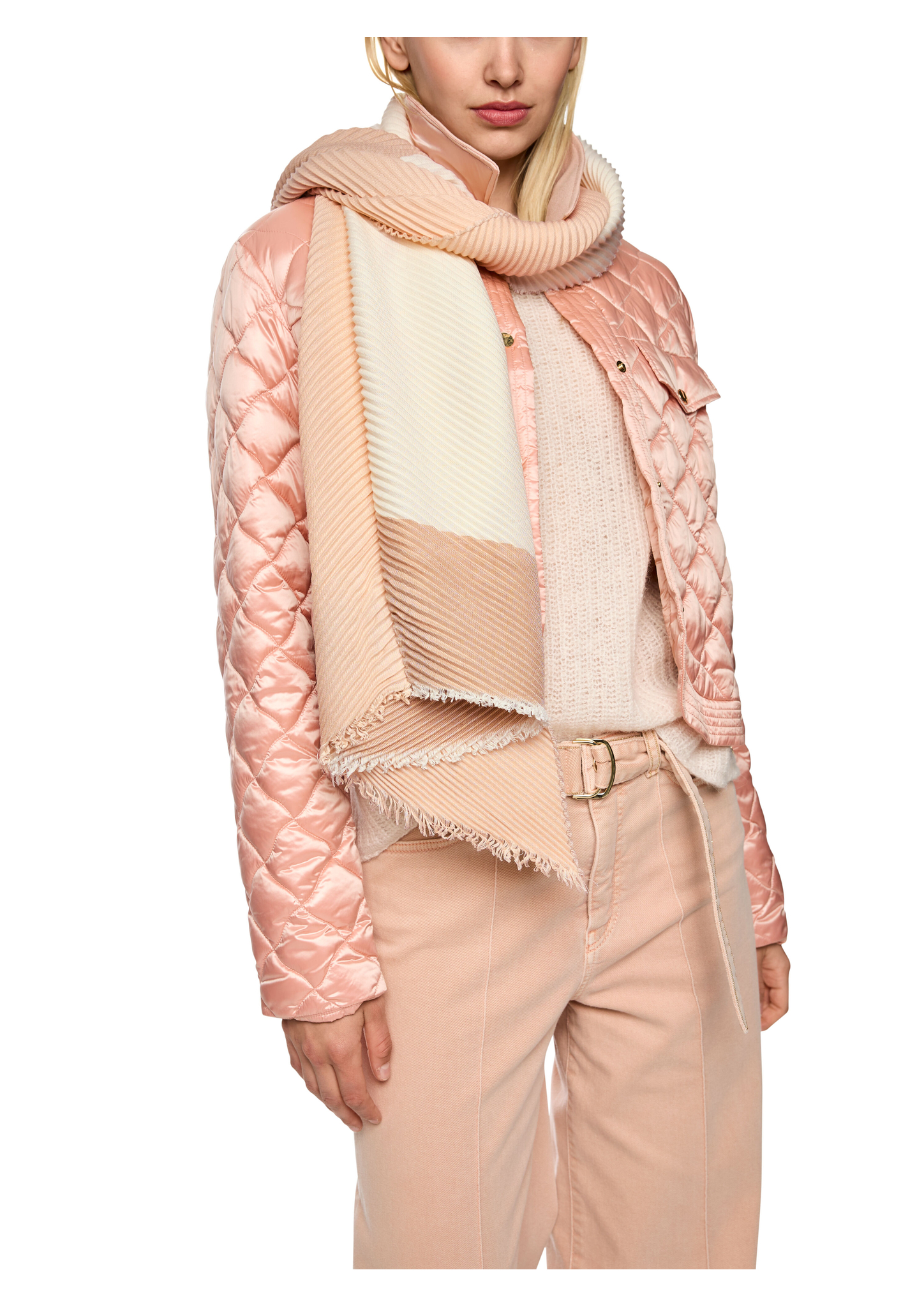 Plissierter Schal mit feinen Fransen|Dieser plissierte Schal besticht durch seine asymmetrischen Enden und feine Fransen. In zarten, harmonischen Tönen gehalten, passt er perfekt zu neutralen Looks. Die leichte, fließende Qualität sorgt für angenehmen Tragekomfort und verleiht jedem Outfit einen stilvollen, femininen Akzent.|Längliche Form|Ideal für Layering-Looks|Fransenrand|Softer Griff|Länge: 190 cm / Breite: 85 cm