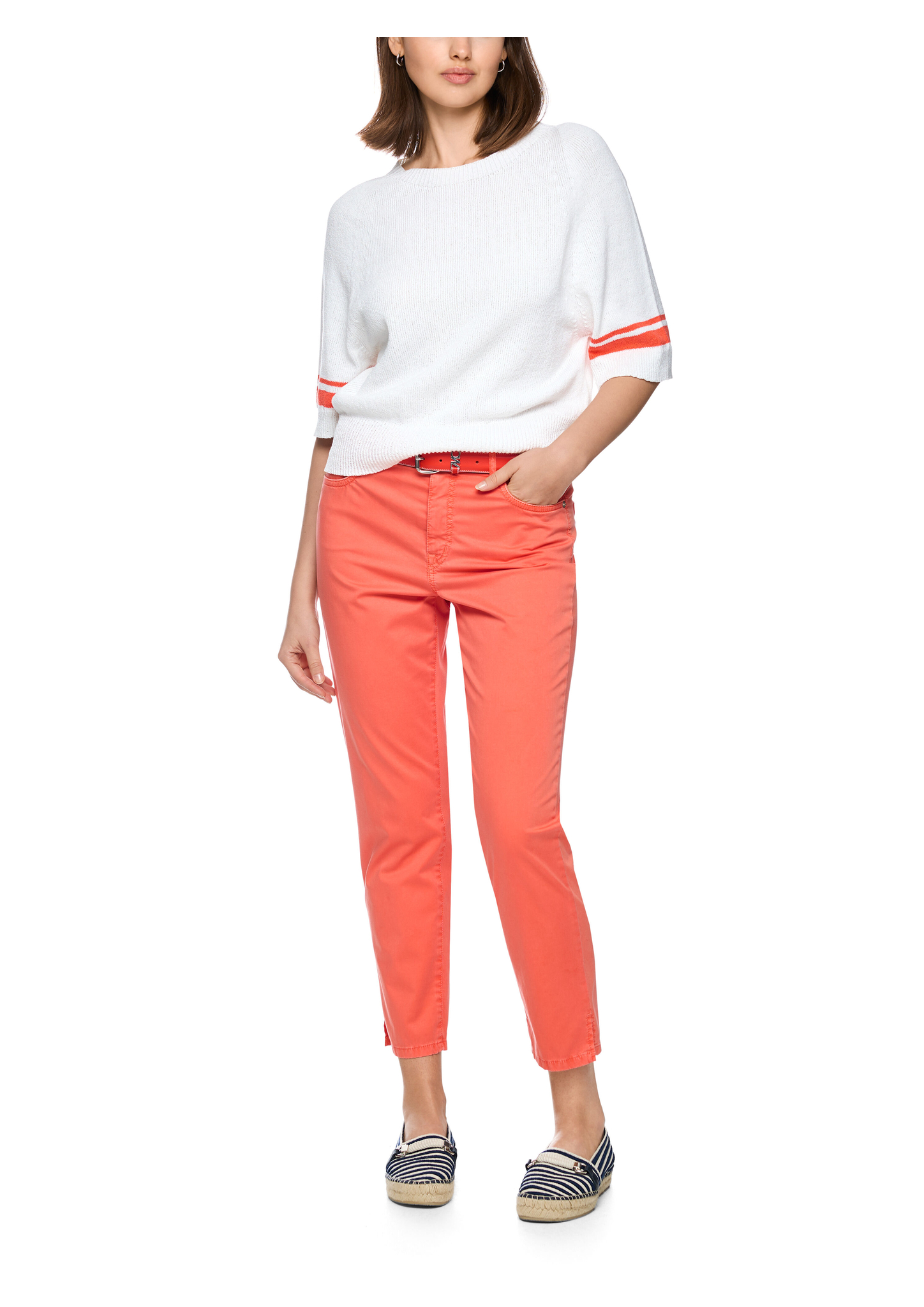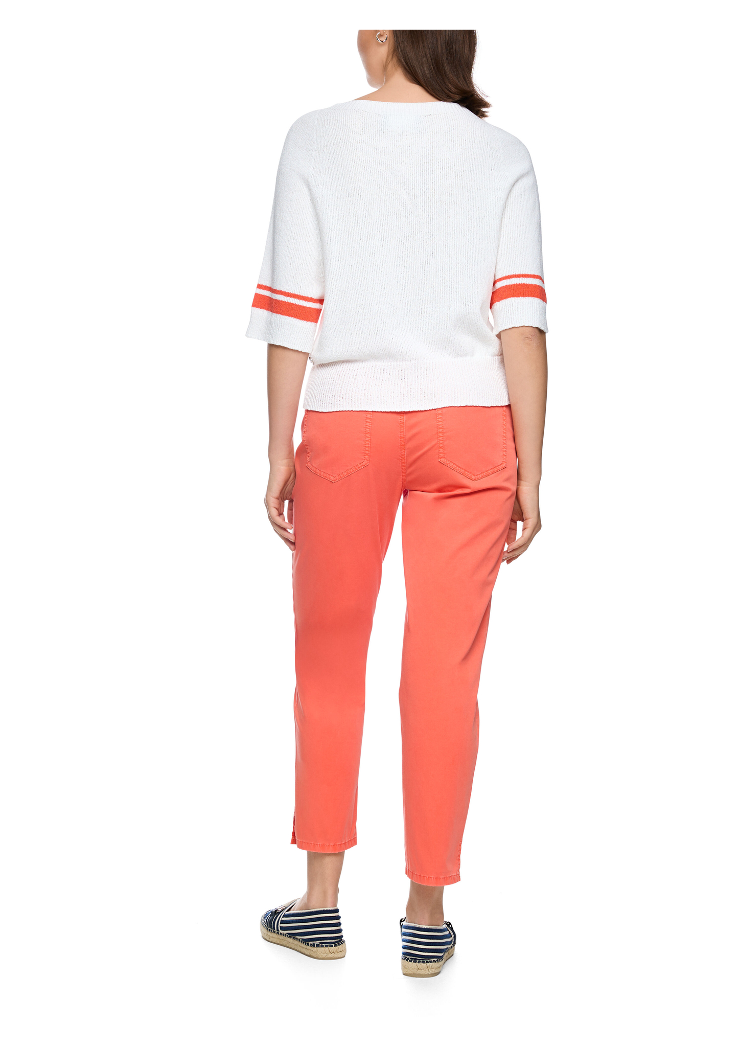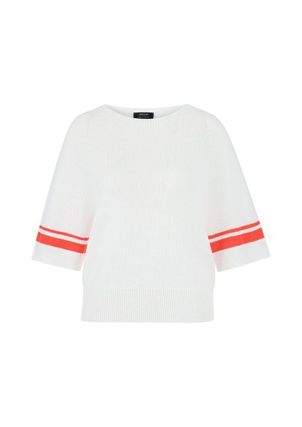 Pullover "Rethink Together"|Kurzarm Pullover mit kastigem Schnitt, Breitem Ausschnitt und maritimen Streifen-Details. Das Modell wird verantwortungsbewusst produziert und trägt das Nachhaltigkeitslabel "Rethink Together". Zudem ist es „Knitted in Germany“: Das Verstricken der Garne auf hochmodernen Strickmaschinen und die Veredelung der Stoffe geschehen am Standort Deutschland. Zusammengenäht werden die einzelnen Teile wie Ärmel, Vorderteil etc. in europäischen Partnerbetrieben.|Kastiger Schnitt|Knitted in Germany|Kurzarm|Streifen-Details|Das Model ist 179 cm groß und trägt N3/38.
