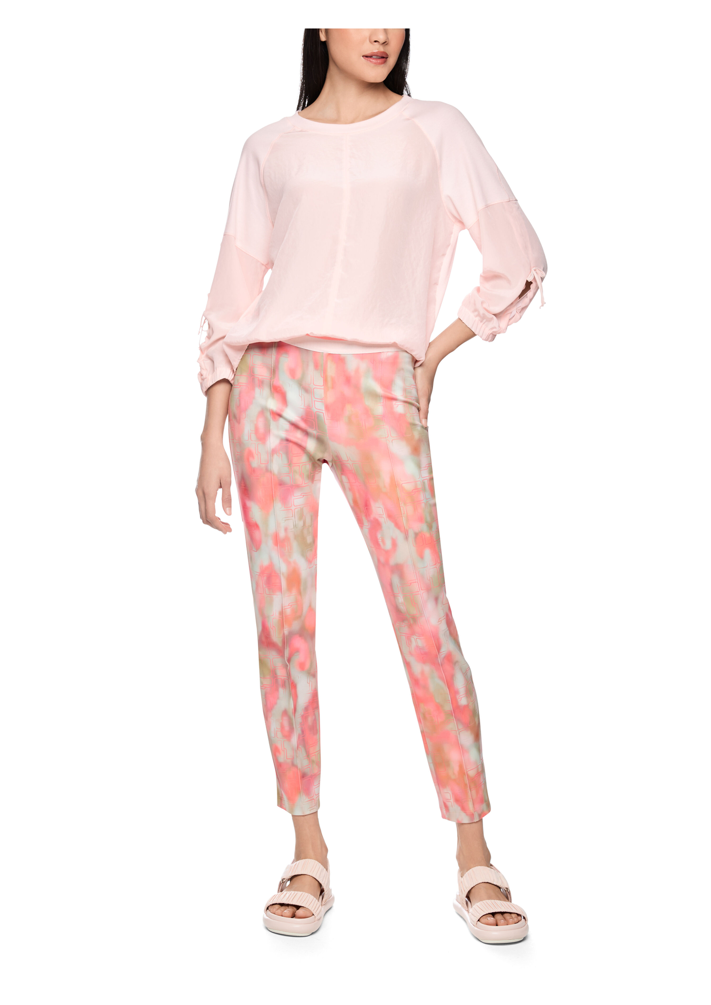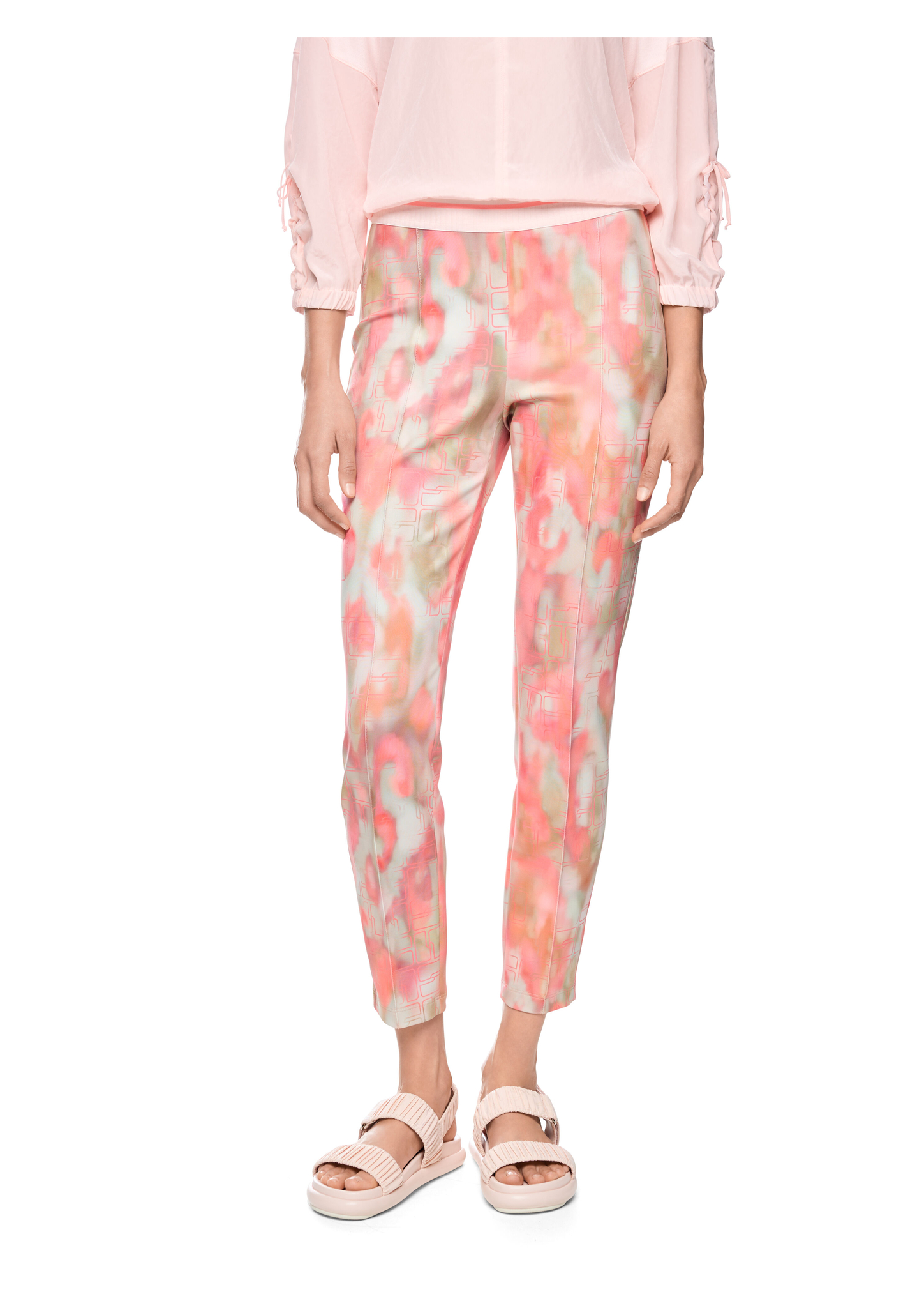 Das Modell SOFIA präsentiert sich mit einer leicht verkürzten Beinlänge, einer regulären Bundhöhe und eng anliegendem Schnitt. Das Jersey-Material ist angenehm weich und elastisch. Die Hose ist zusätzlich mit einem Gummibund versehen, was einen hohen Tragekomfort garantiert. Ein echter Hingucker ist der farbenfrohe all-over Print mit eleganter Bundfalte.