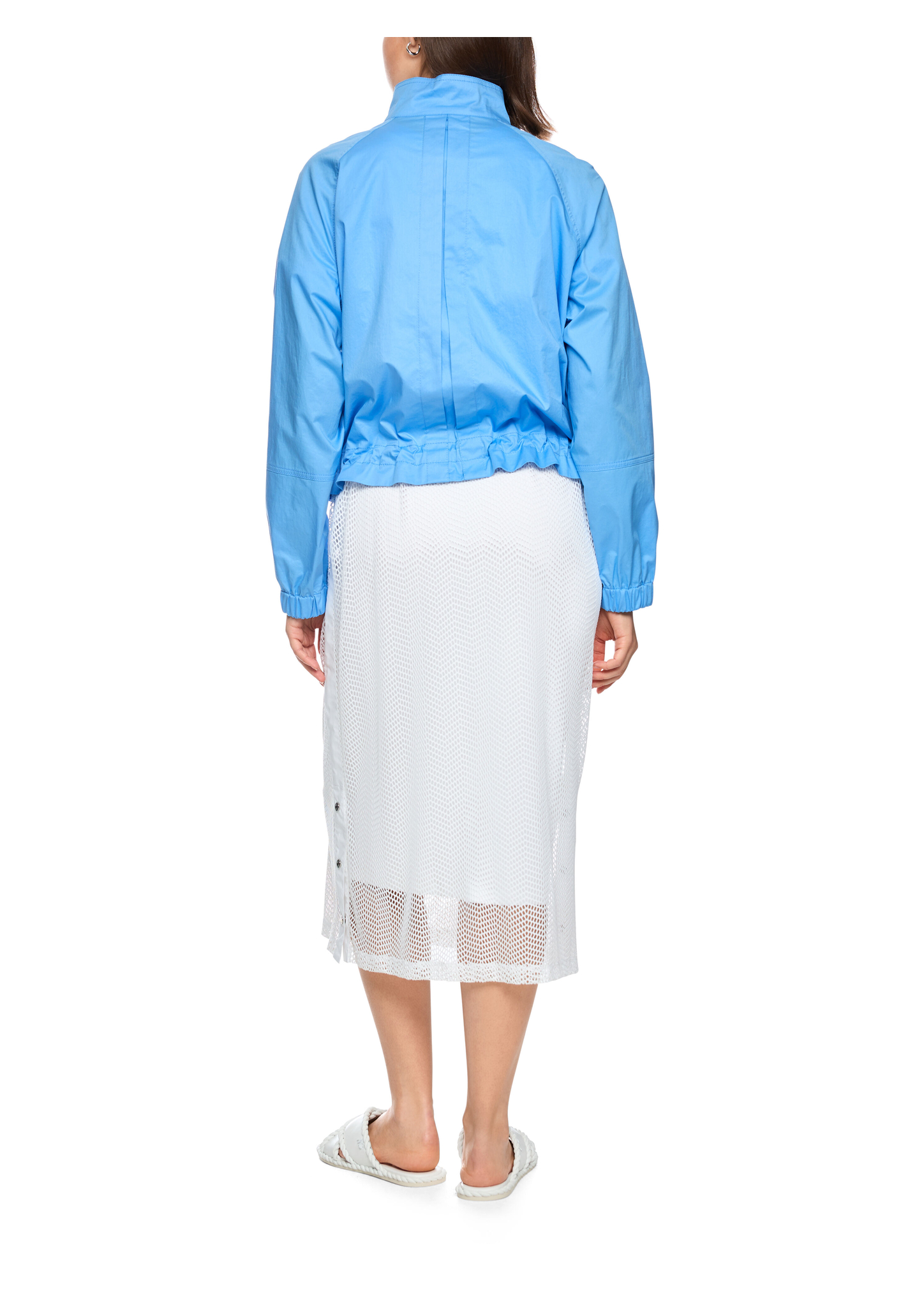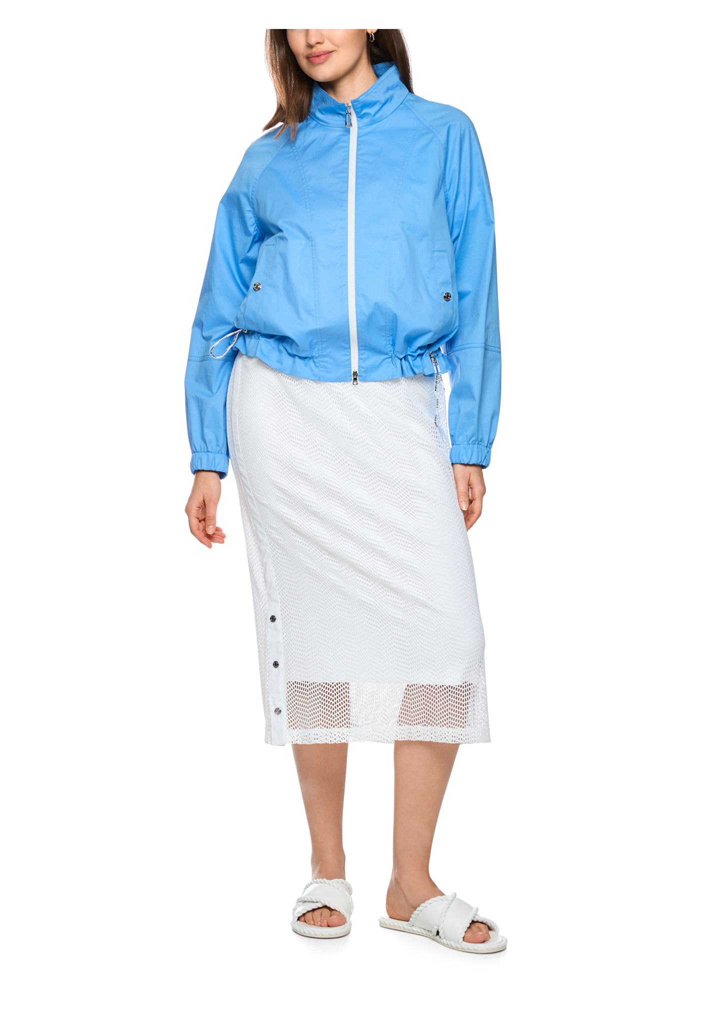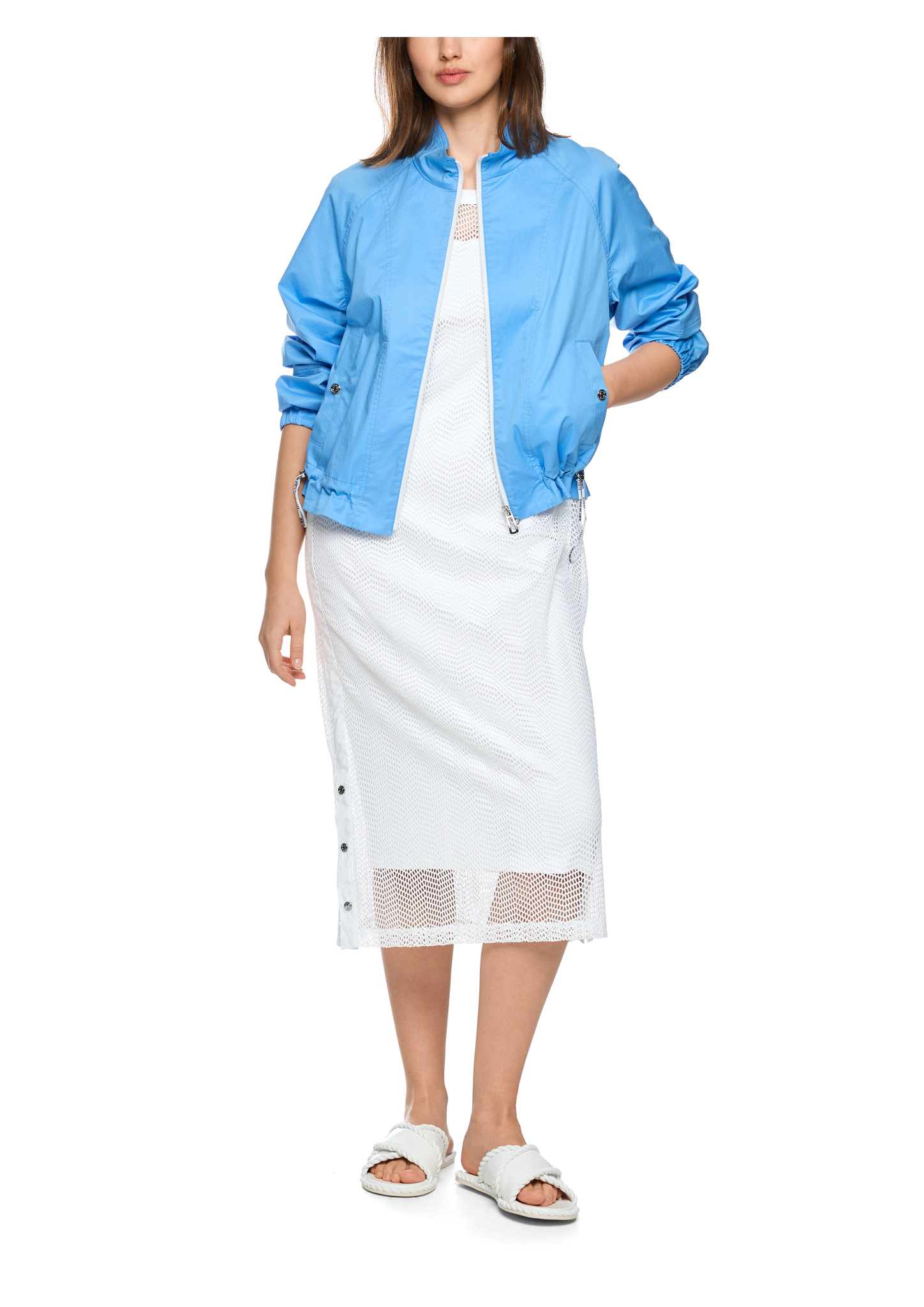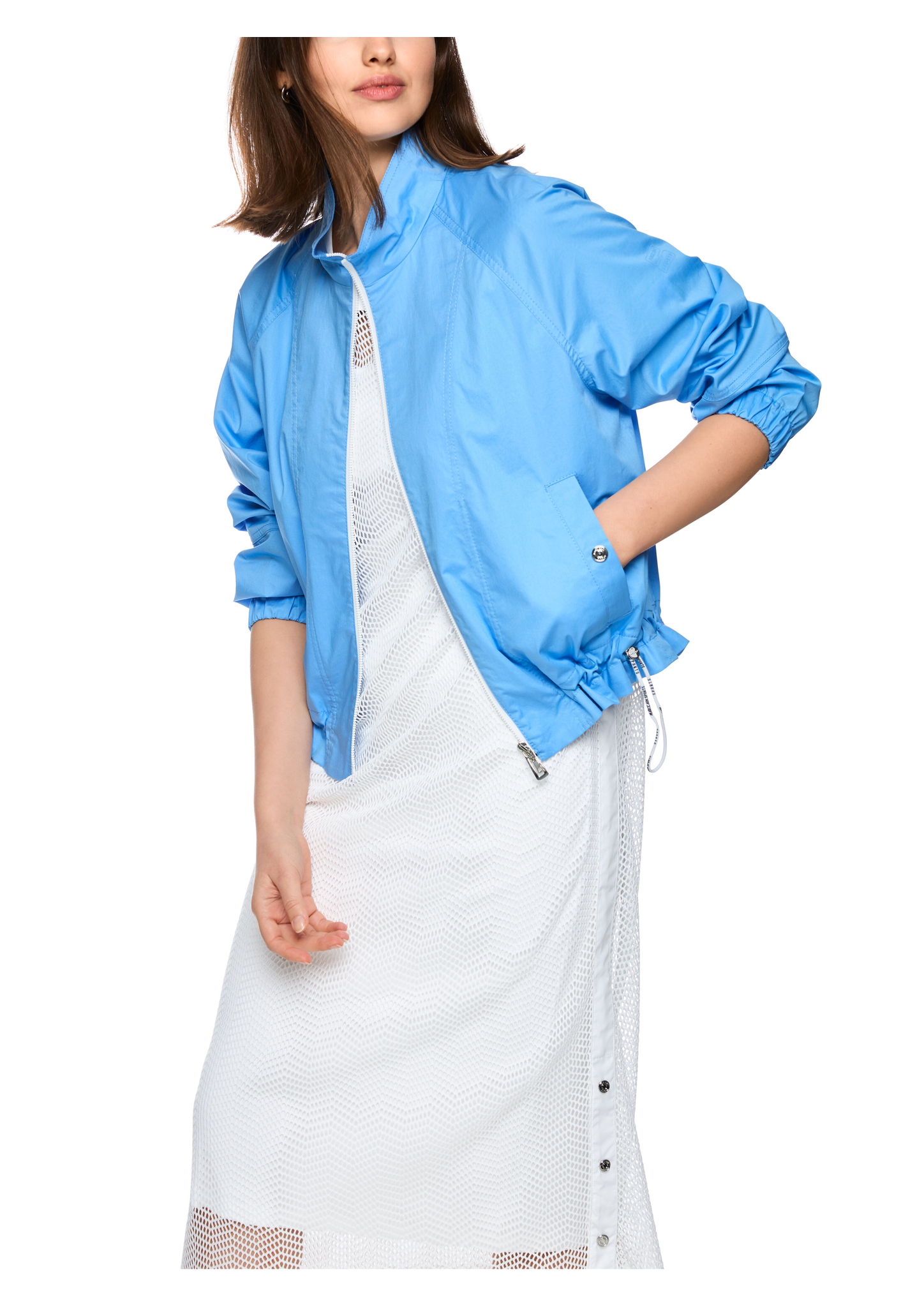 Sportliche Bomberjacke|Lässige Bomberjacke aus luftig-leichtem Baumwollmix. Sie kommt mit gerader Form und langen Ärmeln, die mit einem Gummibund abschließen. Ein Stehkragen, seitliche Taschen sowie Raffungen am Saum ergänzen den sportlichen Look. Geschlossen wird die Jacke mit einem Reißverschluss, der sich von beiden Seiten öffnen lässt. Sie ist nicht gefüttert.|Lockere Form|Reißverschluss|Stehkragen|Baumwollmix|Das Model ist 179 cm groß und trägt N3/38.
