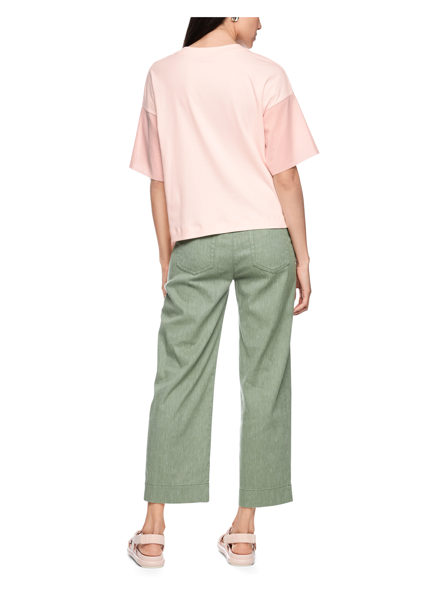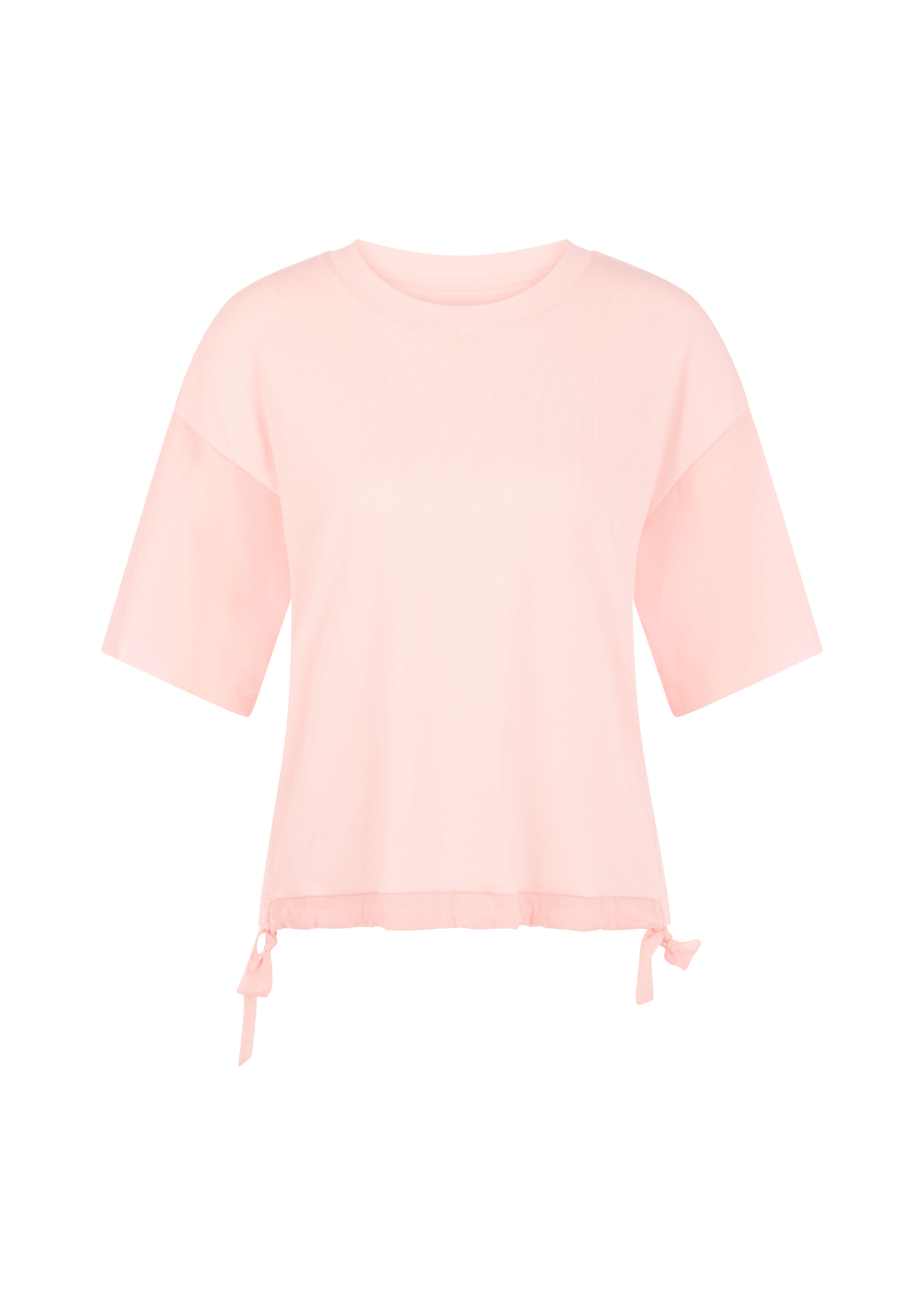 Sportliches T-Shirt mit lässigem Schnitt und überschnittenen Schultern. Es kommt mit Rundhals, weiten Ärmeln und spannendem Materialmix. Die Ärmel sowie der Saum sind aus einem leicht transparenten Stoff gefertigt, der für einen sportlichen Touch sorgt. Durch die Raffung kann der Bund mit Bändern beliebig weit oder eng eingestellt werden. Ein praktisches und zugleich stylisches Detail.