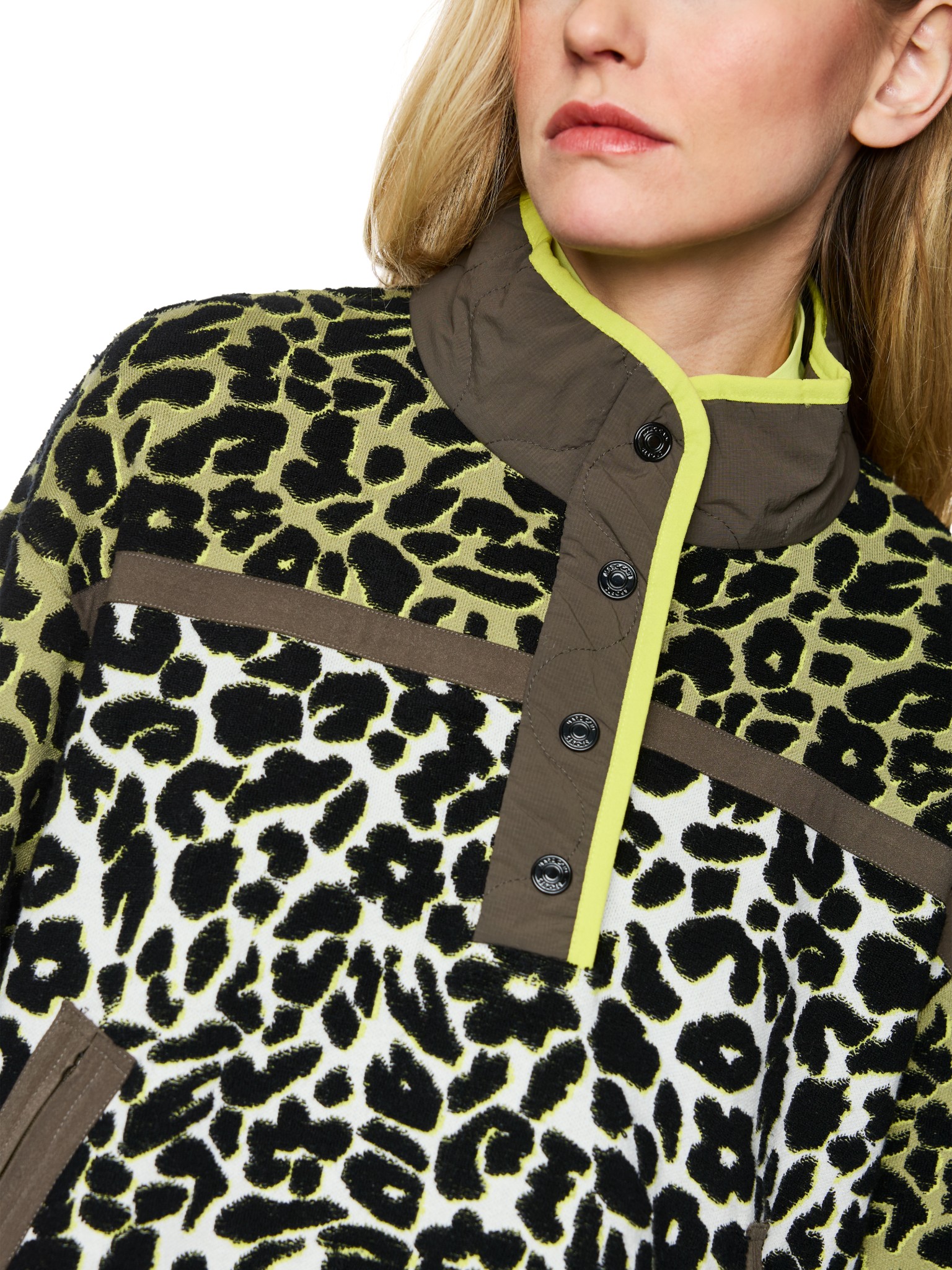 Der vom Trekking inspirierte Pullover ist aus einer coolen Strickware mit 3D-Haptik. Sportliche Aspekte sind der Stehkragen mit Knopfverschluss, die Taschen mit Reißverschluss und die seitlichen Reißverschlüsse zum einfachen An- und Ausziehen. Weiterhin verfügt das Modell über Kontrast-Paneele aus Funktionsstoff und Rippenstrick-Bündchen an den Ärmelsäumen.
