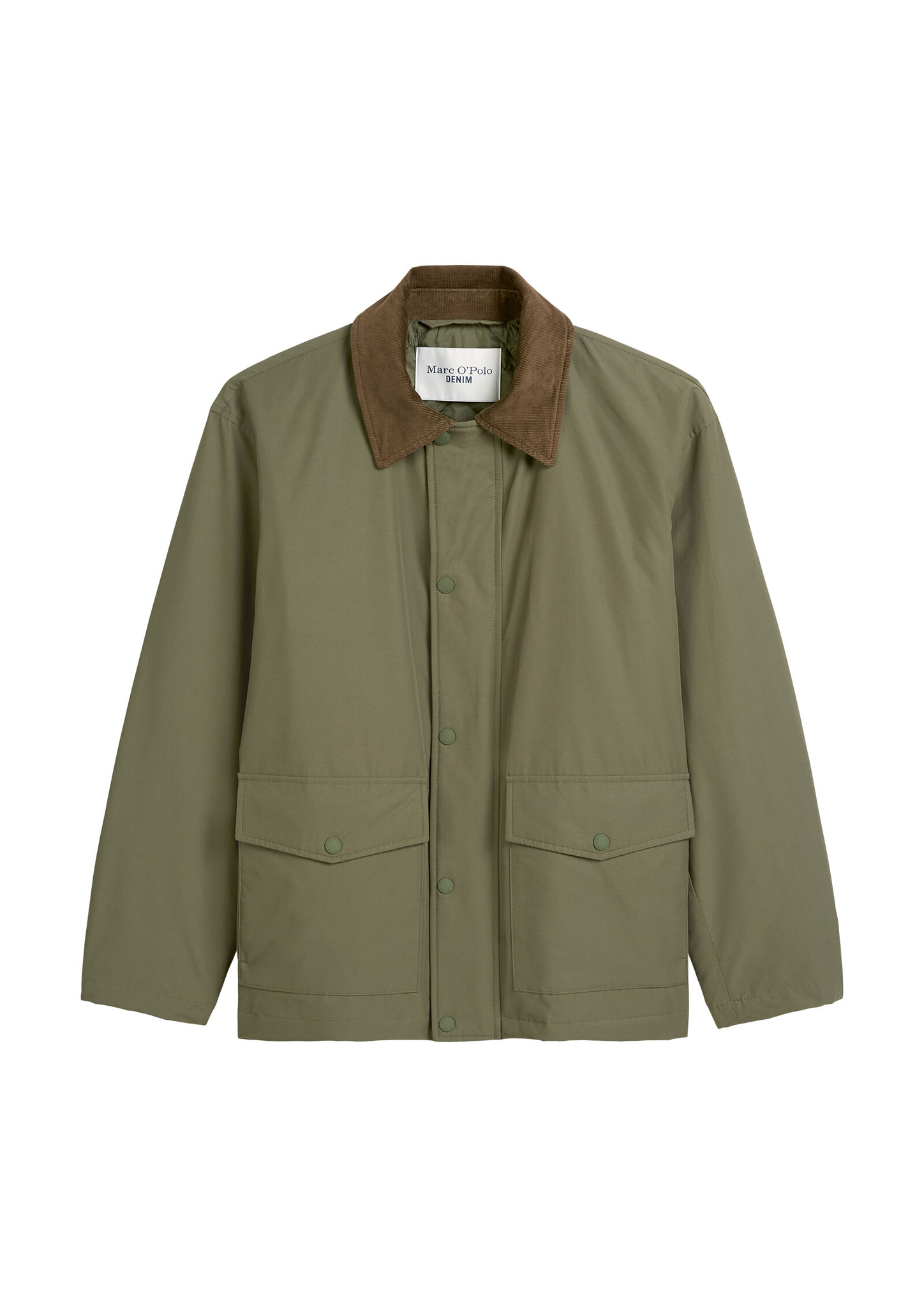 Die Barnjacket von Marc O’Polo DENIM bringt lässigen Style und Funktion zusammen. Gefertigt aus einem wasserabweisenden Bio-Baumwoll-Nylon-Mix mit hohem Recycling-Anteil, hält sie durch die leichte Wattierung mit Unifi REPREVE® angenehm warm. Das gesteppte Rautenfutter aus recyceltem Polyester sorgt für Komfort und extra Taschen-Features. Mit Reißverschluss, Druckknopfblende und seitlichen Klappentaschen wird die Jacke zum entspannten Allrounder für kühle Tage. Unverzichtbar: der weiche Cordkragen in Kontrastfarbe.
