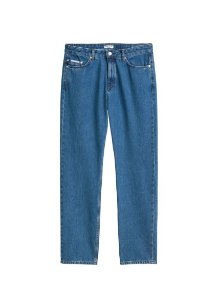 Lässig und leger die Jeans überzeugt mit ihrem lockeren Schnitt und geradem Beinverlauf. Vintage inspiriert präsentiert sie sich im authentischen Five-Pocket-Design mit dezent aufgehellten Partien. Hergestellt aus reiner Bio-Baumwolle in Heavy Blue Rigid Denim Qualität ganz ohne Stretch. Markante Details wie der Metall Logoknopf, der Reißverschluss, Nieten an den Taschenkanten.