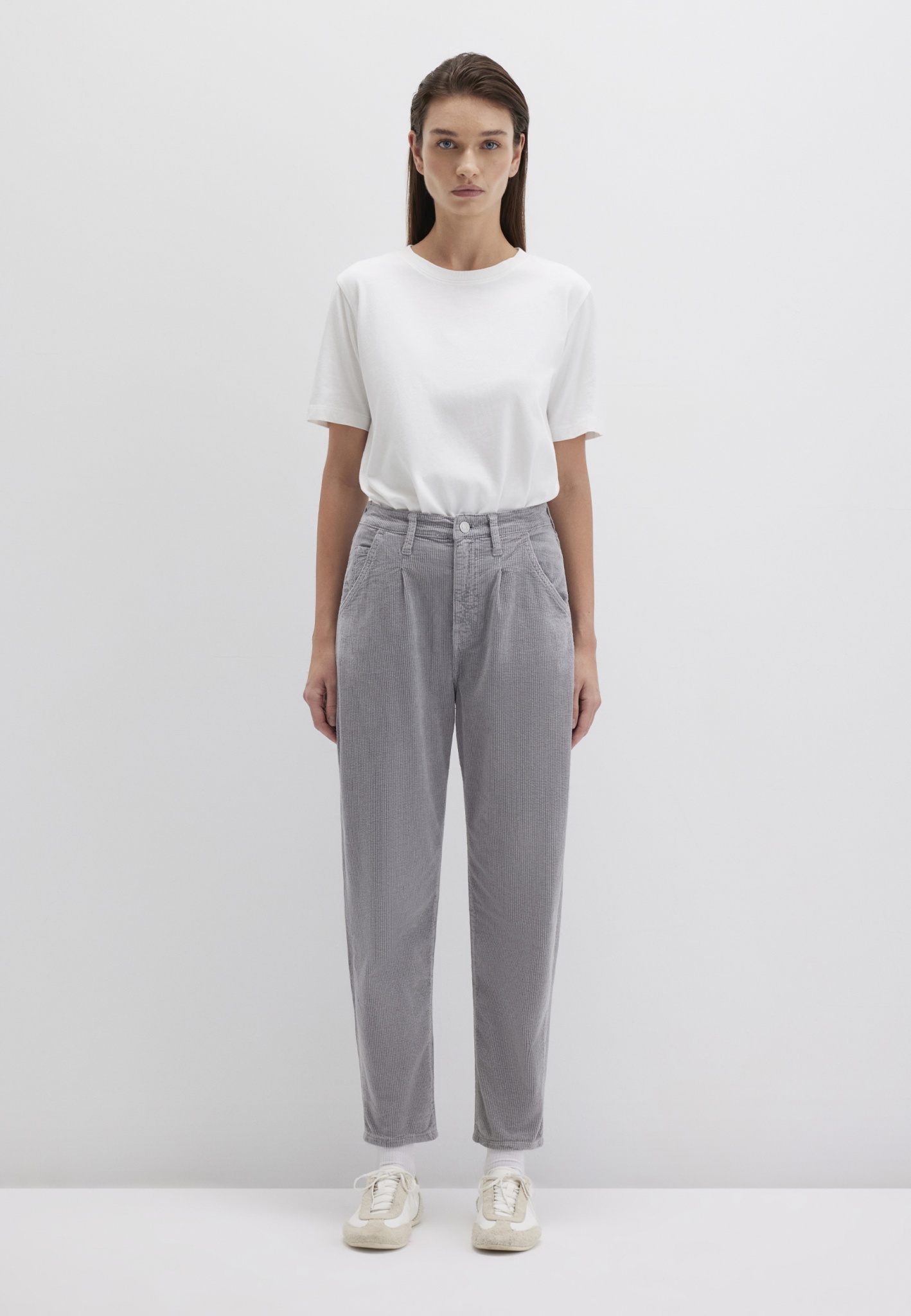 Entdecken Sie den Charme von Cord in einem modernen Schnitt. Diese Hose präsentiert sich mit einem schmeichelhaften hohen Bund und eleganten französischen Taschen, kombiniert mit einem Reißverschluss für eine klare Linie. Der mittelschwere Corduroy mit hohem Stretchanteil sorgt für ein luxuriöses Tragegefühl und optimale Bewegungsfreiheit. Die helle Waschung in leicht ausgewaschener Optik verleiht dem Material eine frische und zeitgemäße Note. Die Passform überzeugt durch einen engzulaufenden Beinverlauf, der durch den modisch umgeschlagenen Saum perfekt abgerundet wird. Ein stilvolles Essential für die kühlere Jahreszeit.
