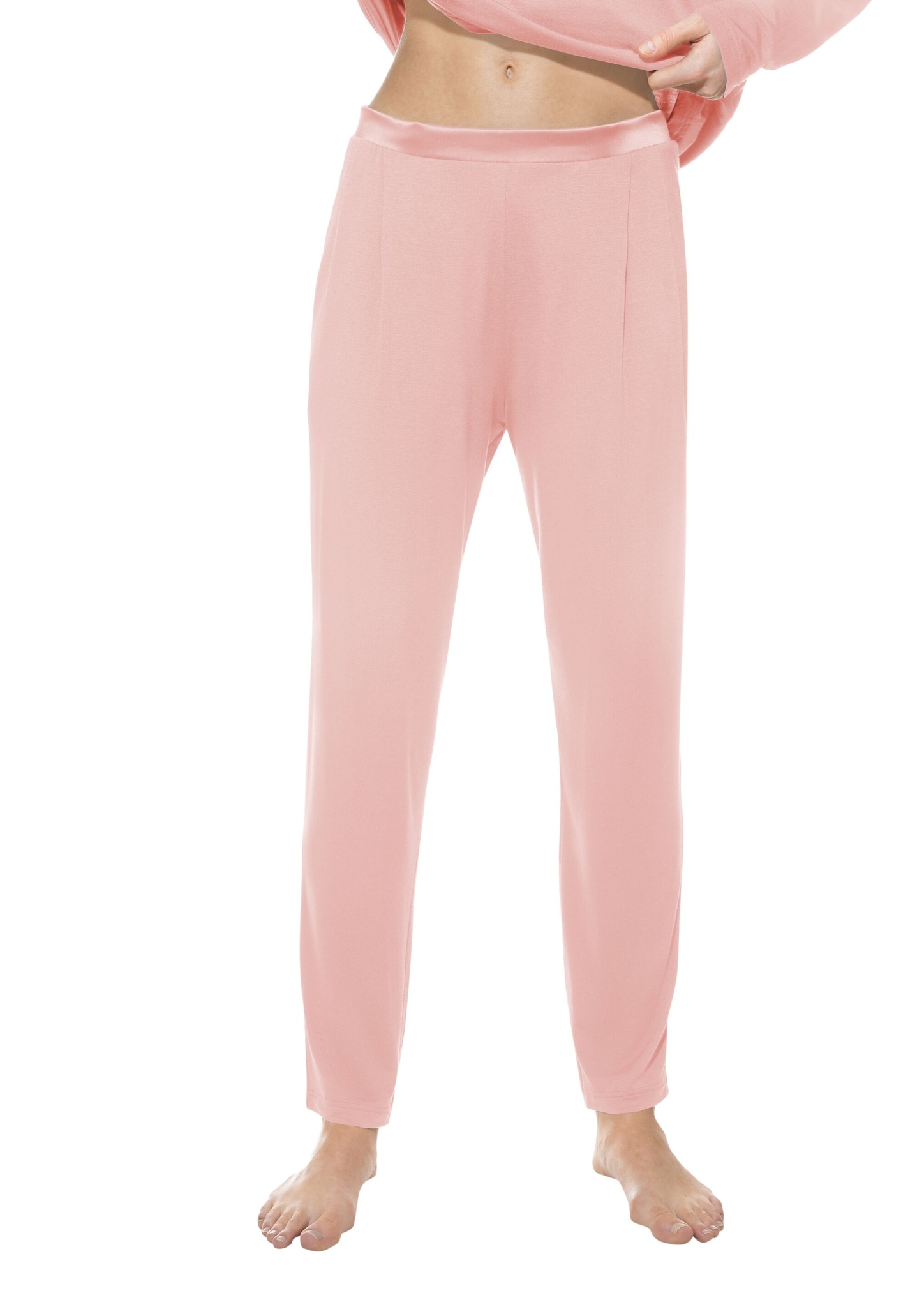 Die Serie Pure Chic besticht durch zeitlose Schlichtheit und überzeugt mit einer Modal-Qualität, die durch tonale Satindetails ergänzt wird. Die knöchellange Hose in der Farbe Milk 'n Coffee ist ein absolutes Wardrobe-Essential und lässt sich super mit den Oberteilen der Kollektion kombinieren. Durch einen sorgfältig abgestimmten Mix aus 94 % Modal und 6 % Elasthan liegt die Hose besonders angenehm auf der Haut. Wir bei mey investieren konsequent in erstklassige Qualität und sorgen mit unserem Know-how in der Wäscheherstellung für die perfekte Passform.