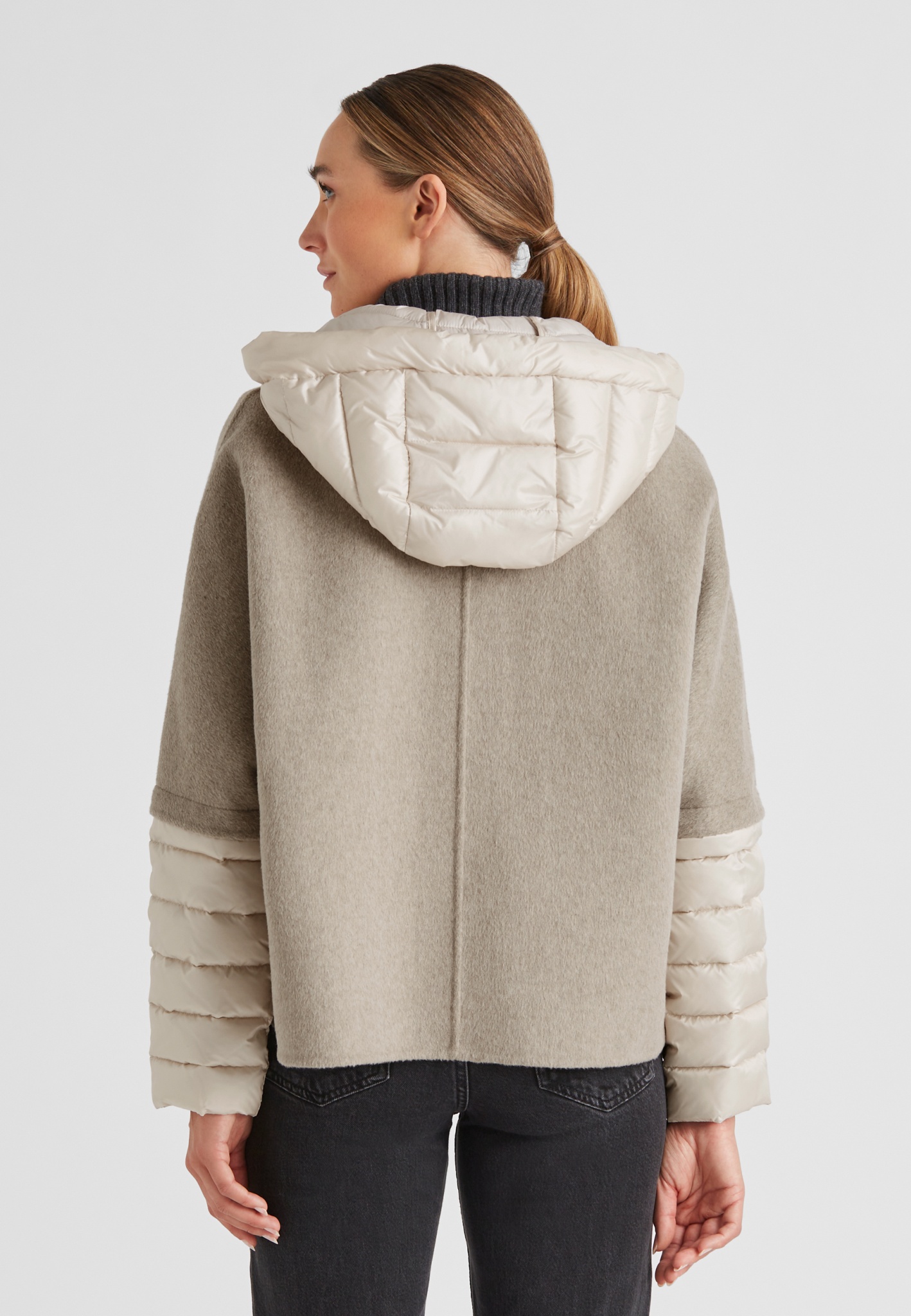 Coole kurze Jacke mit Cape Anmutung im Material Mix aus Wolle Doubleface und Stepp