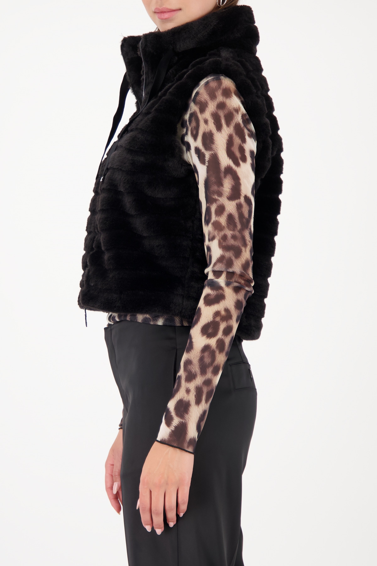 Die kurz geschnittene Fellweste aus Kunstfell mit Streifen verleiht jedem Outfit einen modischen... mehr