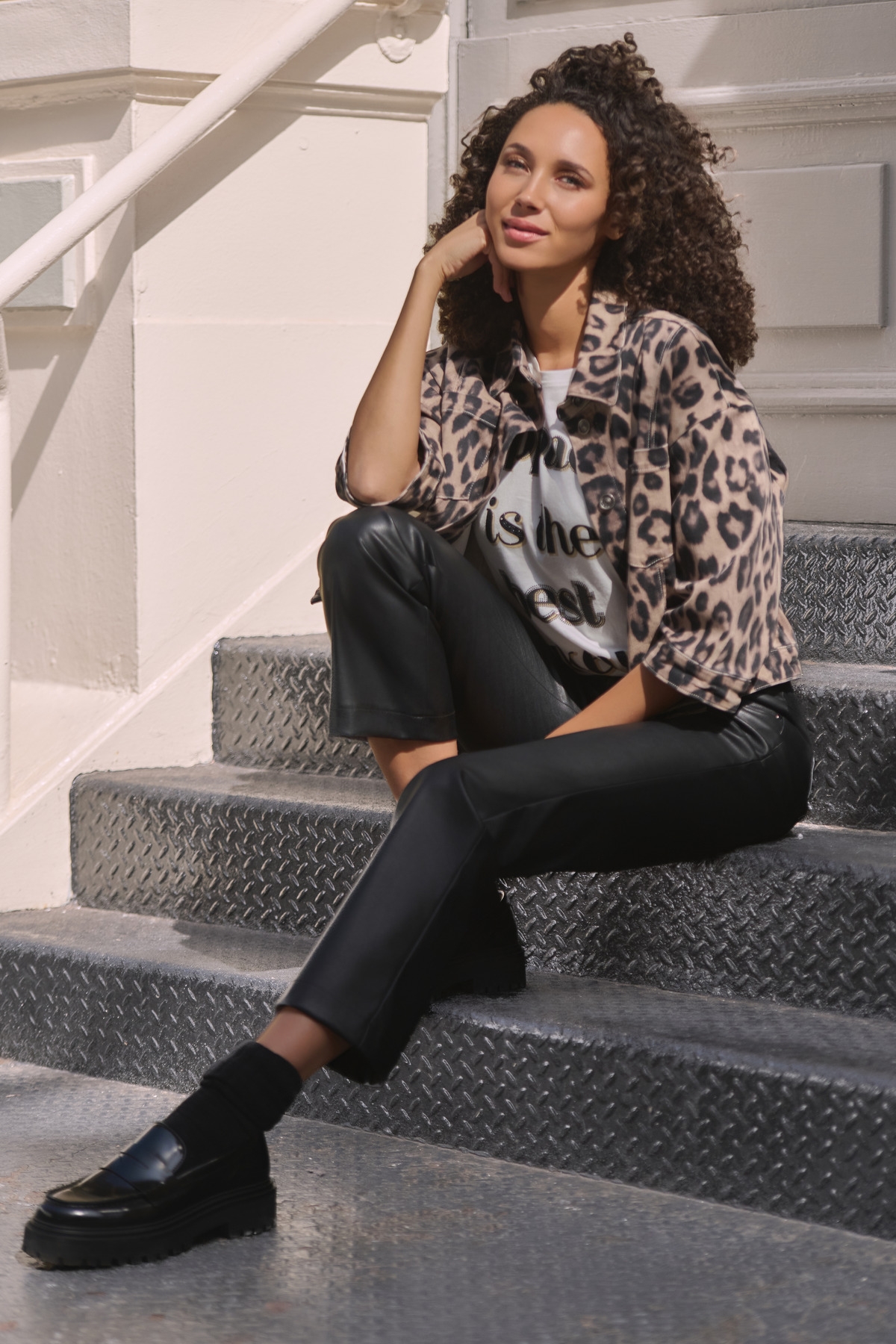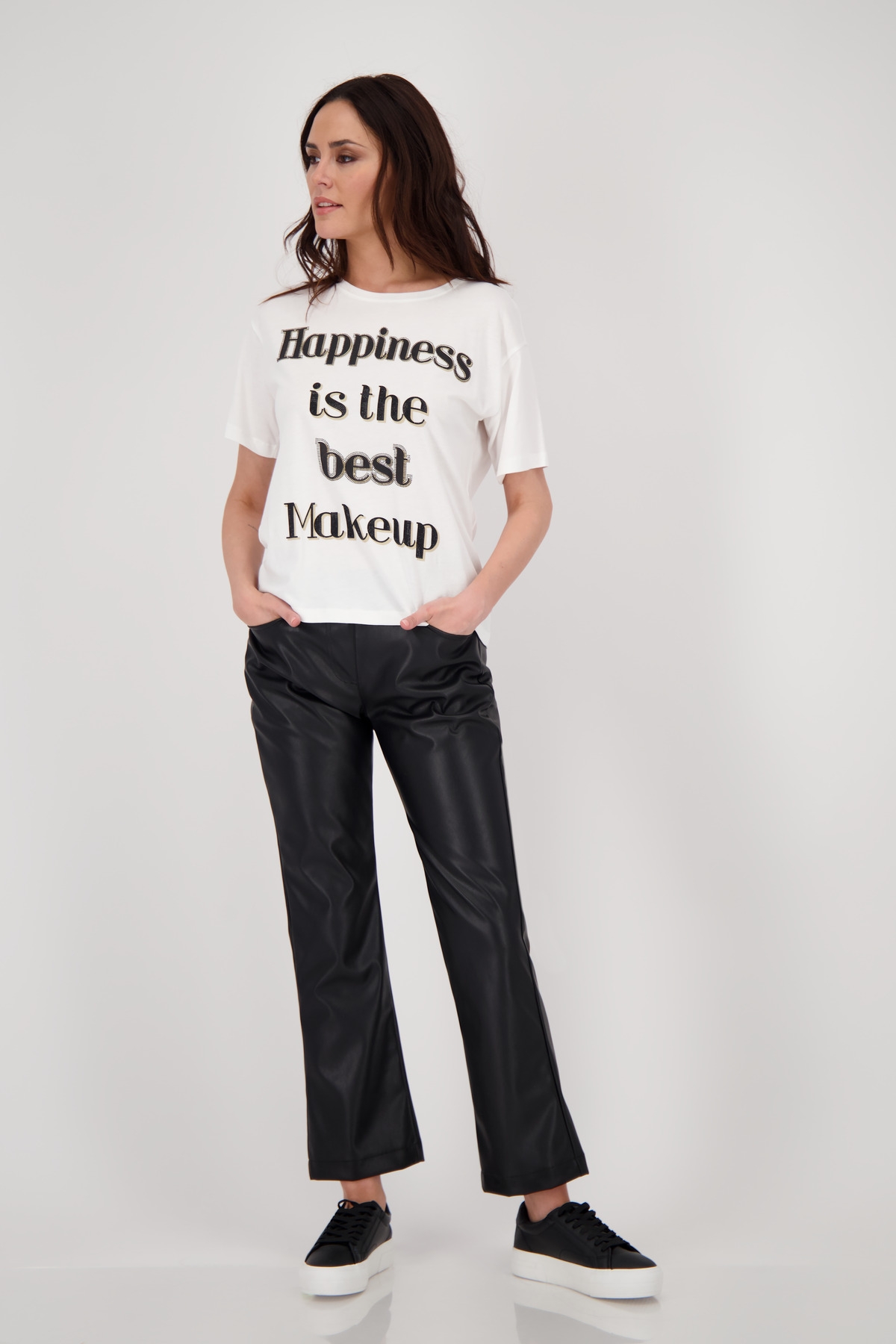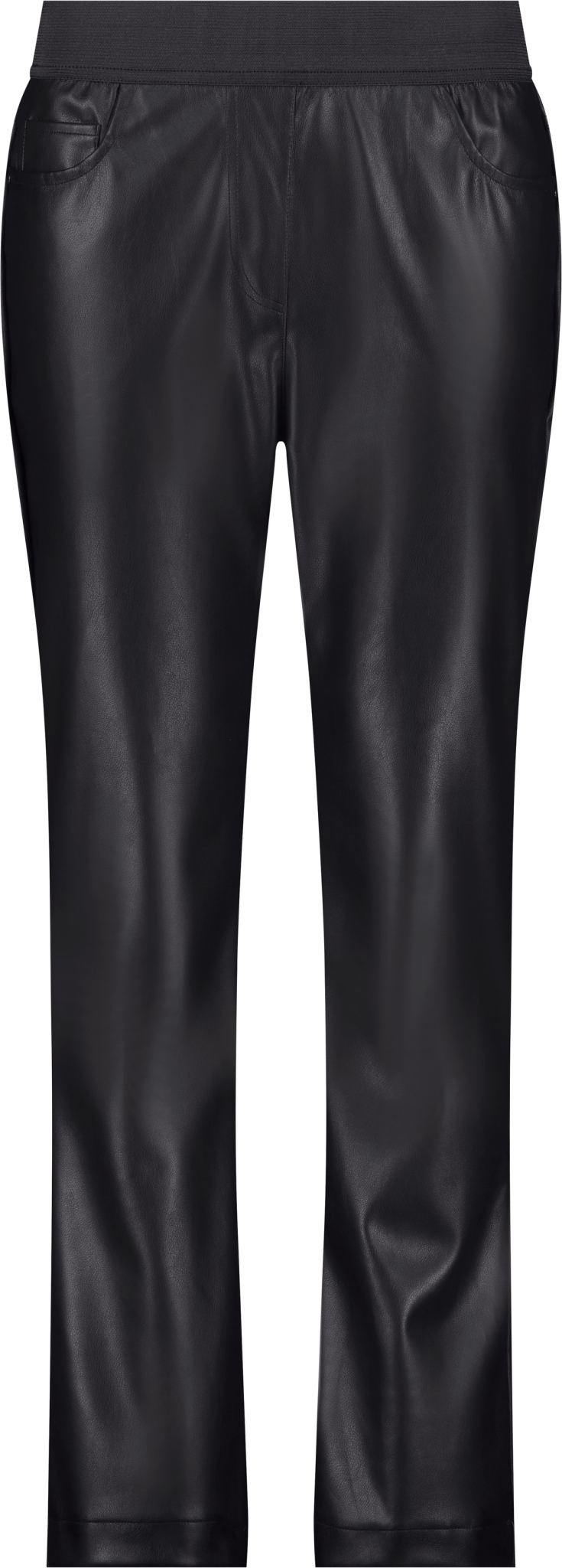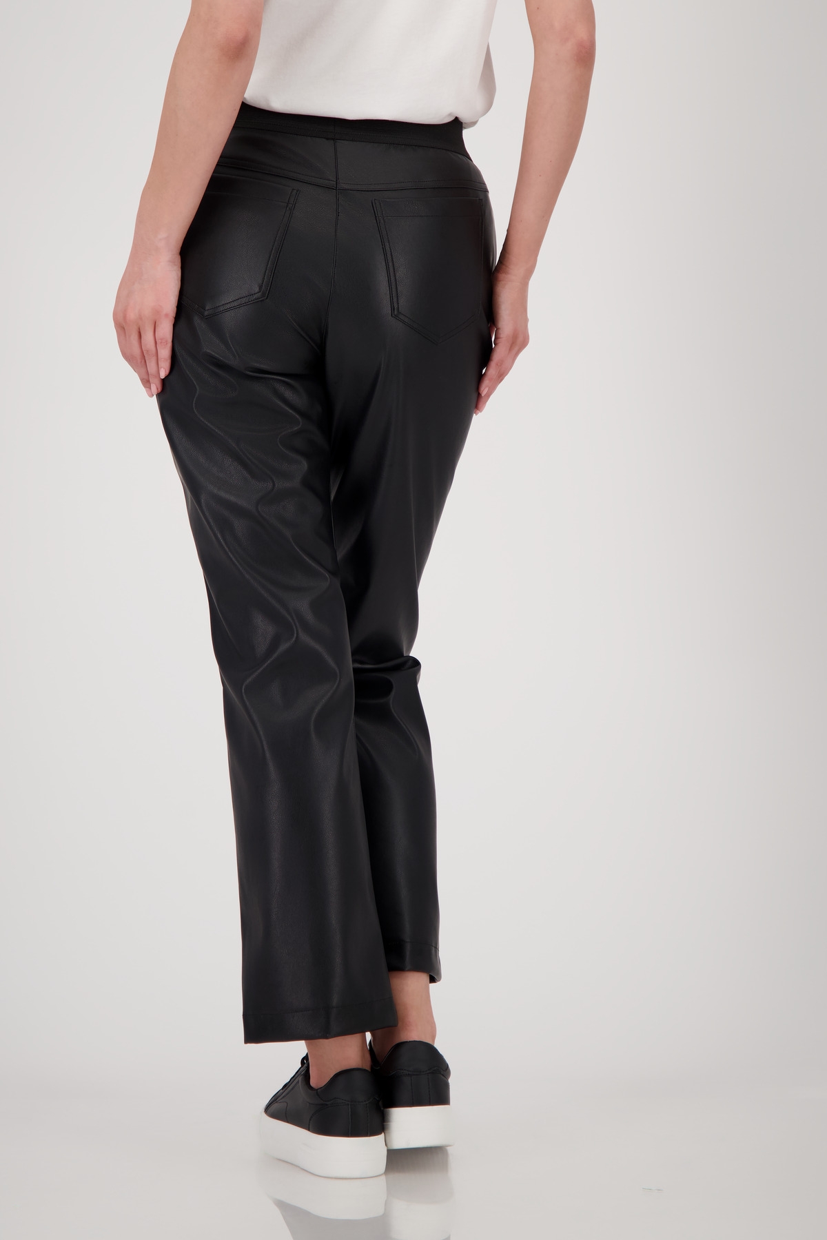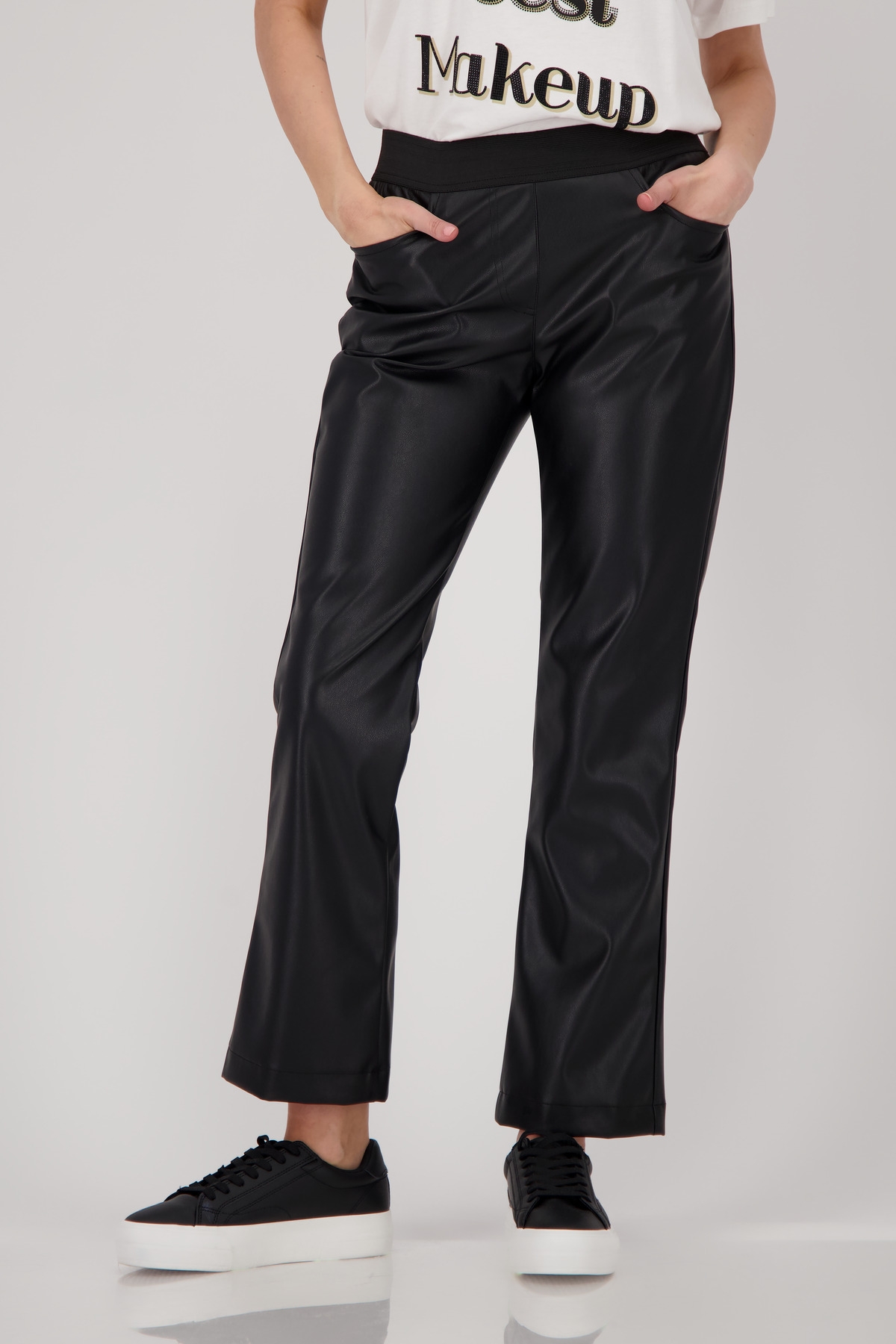 Stylische Hose in Lederoptik mit Straight-Leg-Schnitt und elastischem Bund – bequem, modern und vielseitig kombinierbar für trendige Alltags- oder Abend-Looks.