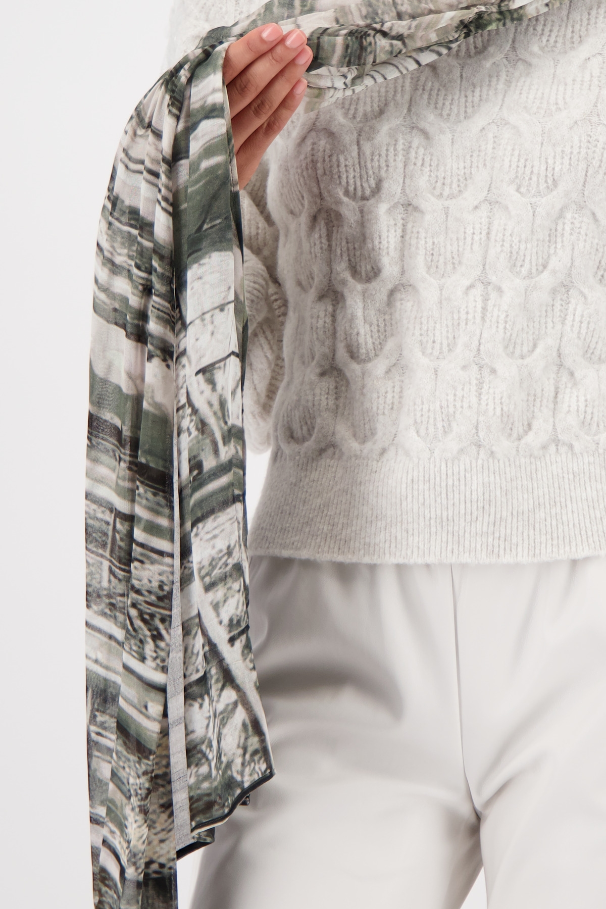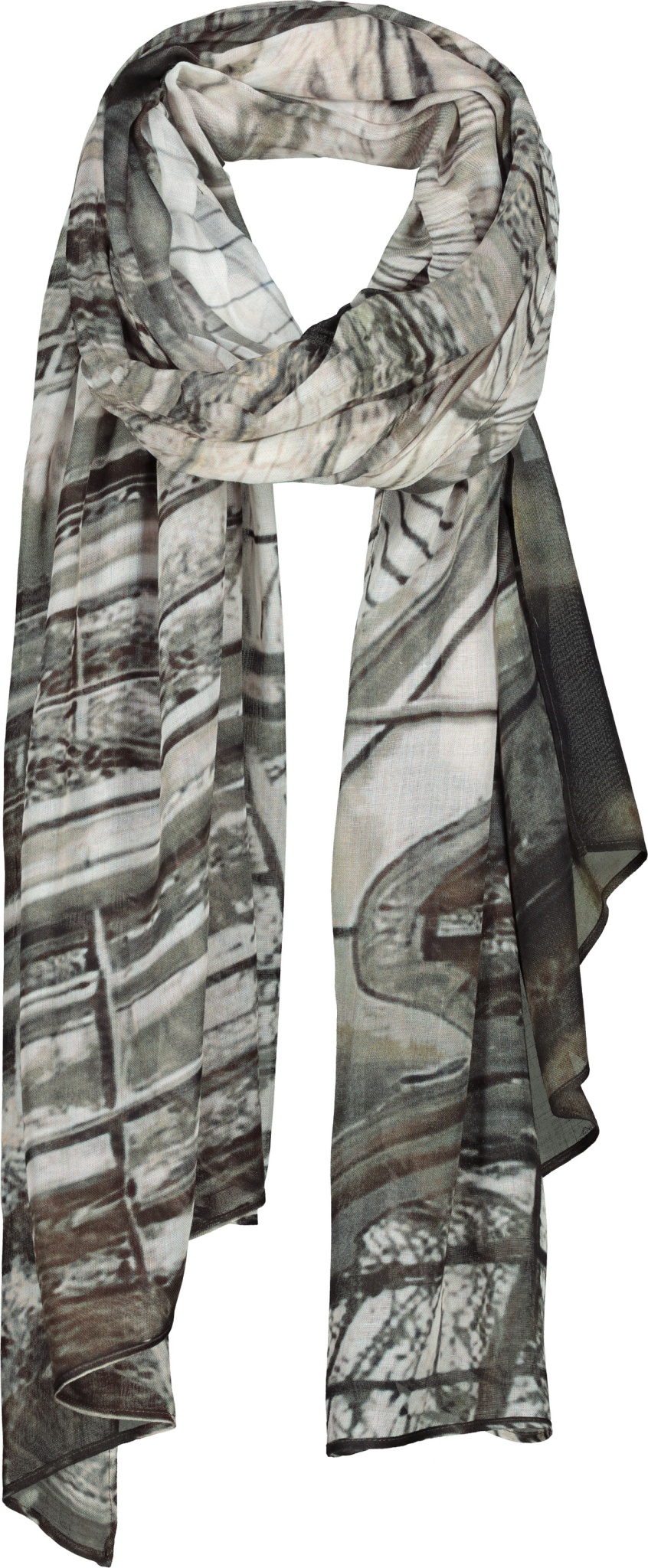 Dieses modische Tuch aus fließender Viskose überzeugt mit einem ausdrucksstarken Allover-Gallery-Muster. Die rechteckige Form ermöglicht vielseitige Styling-Varianten – ob lässig um den Hals, als Haarband oder dekoratives Accessoire. Der weiche Stoff trägt sich angenehm leicht und verleiht jedem Outfit das gewisse Etwas.