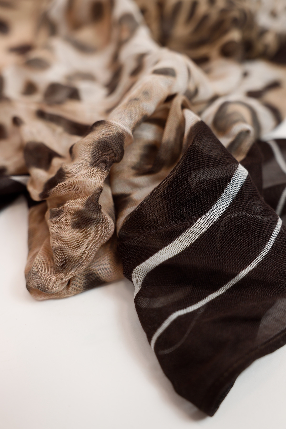 Ein luftiges Tuch aus 100% Viskose mit modernem Leoparden-Print und eleganten Streifen – quadratisch, stilvoll und selbstbewusst.