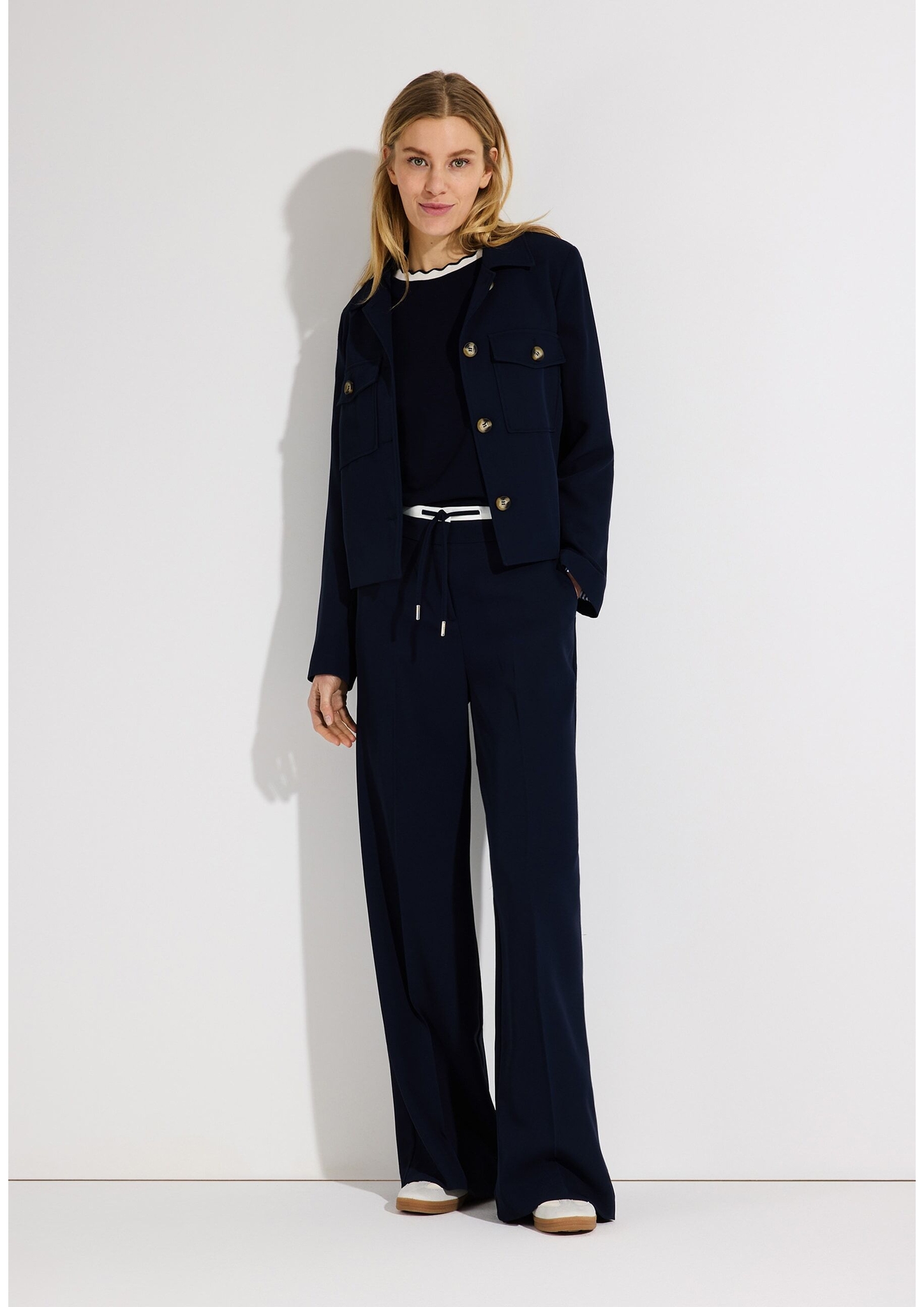 Die kurze, kastige Jacke von MORE & MORE mit dekorativem Streifenfutter wird mit passender Hose... mehr