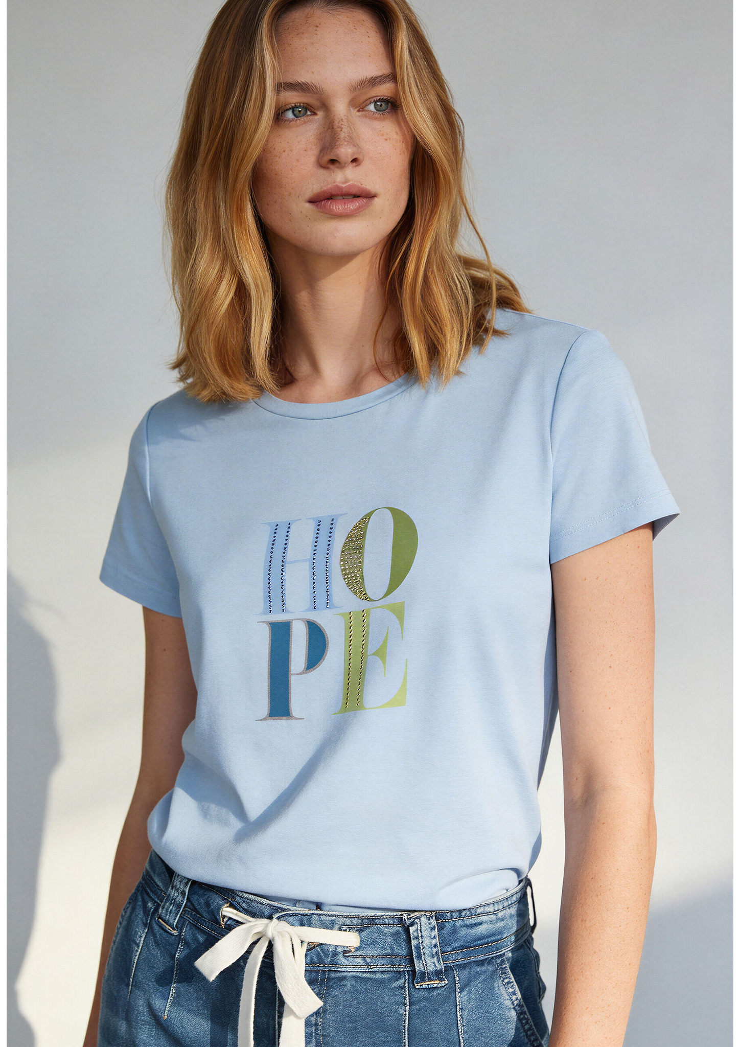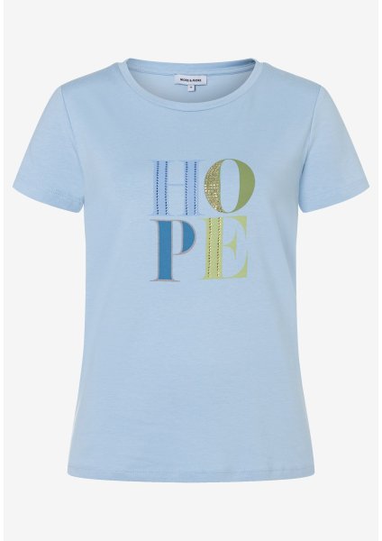 Das weiße Kurzarmshirt von MORE & MORE präsentiert sich mit HOPE-Schriftzug auf der Front und... mehr