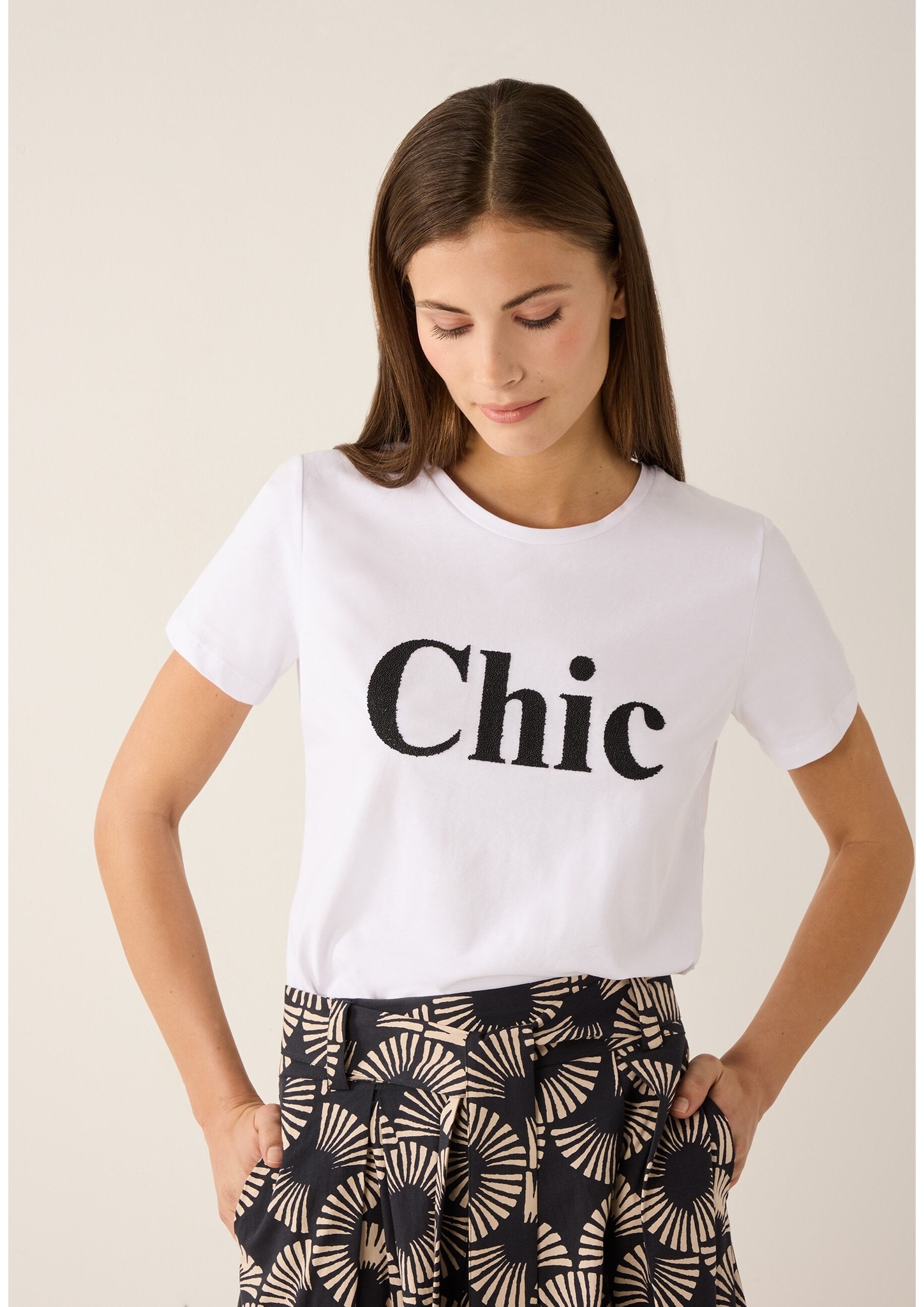 Materialzusammensetzung "More & More T-Shirt mit Perlenschriftzug"