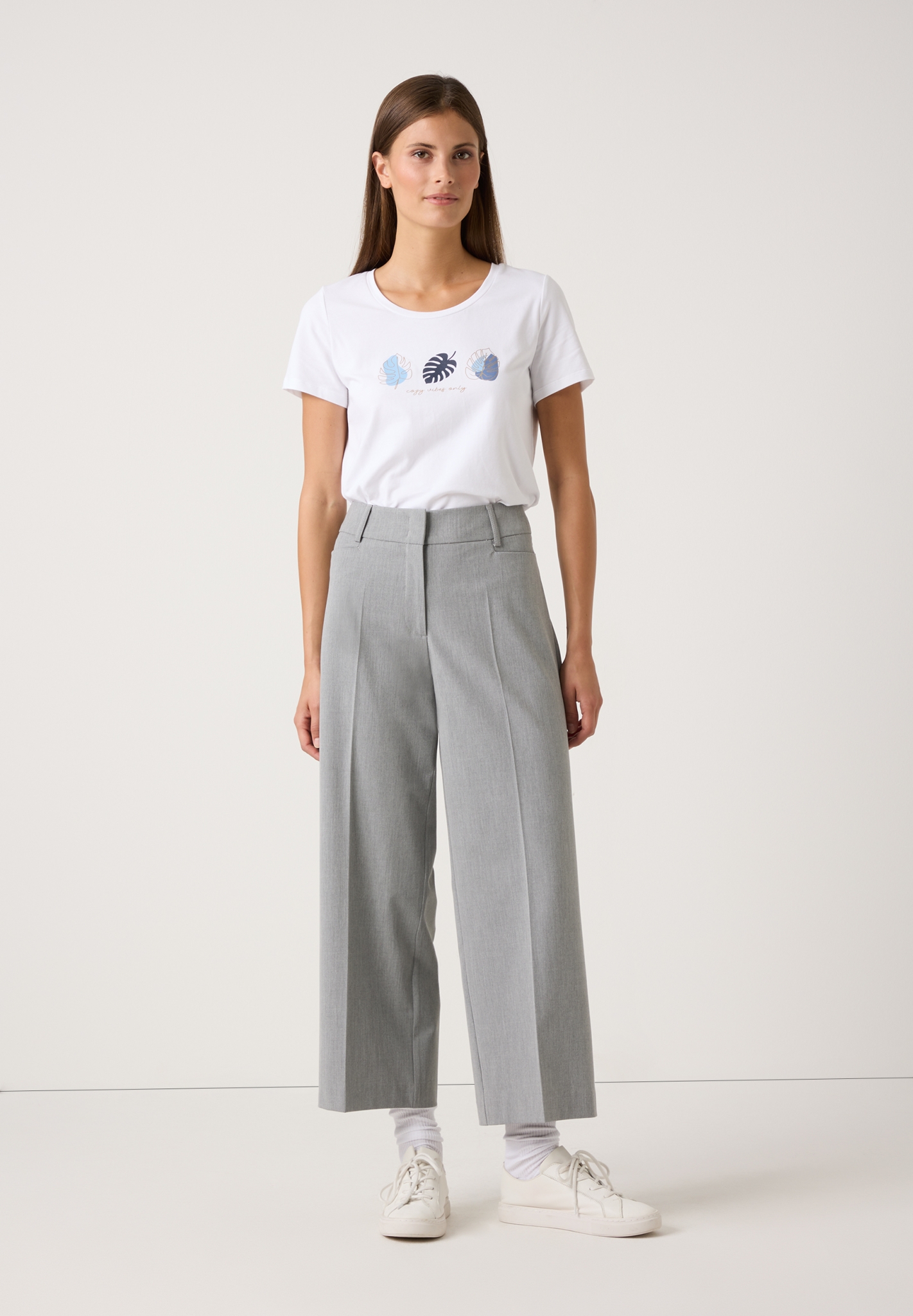 Das weiße Halbarm-Shirt von MORE & MORE mit attraktivem Blätter-Print auf der Front ist ein absolutes Allround-Talent. Es funktioniert zur verwaschenen Jeans genauso gut, wie zum fließenden Meshrock und kann wahlweise auch zum klassischen Businessanzug getragen werden.