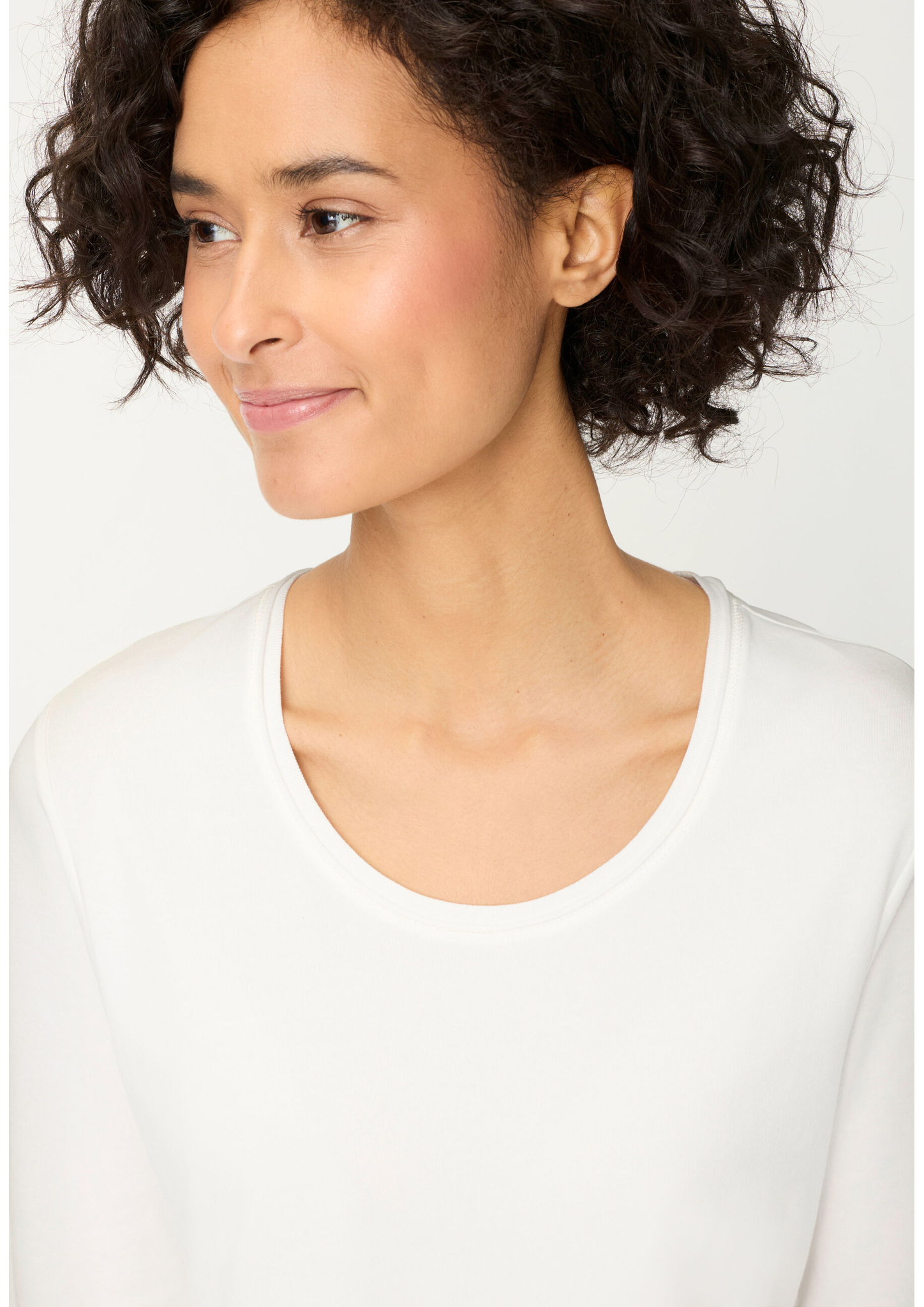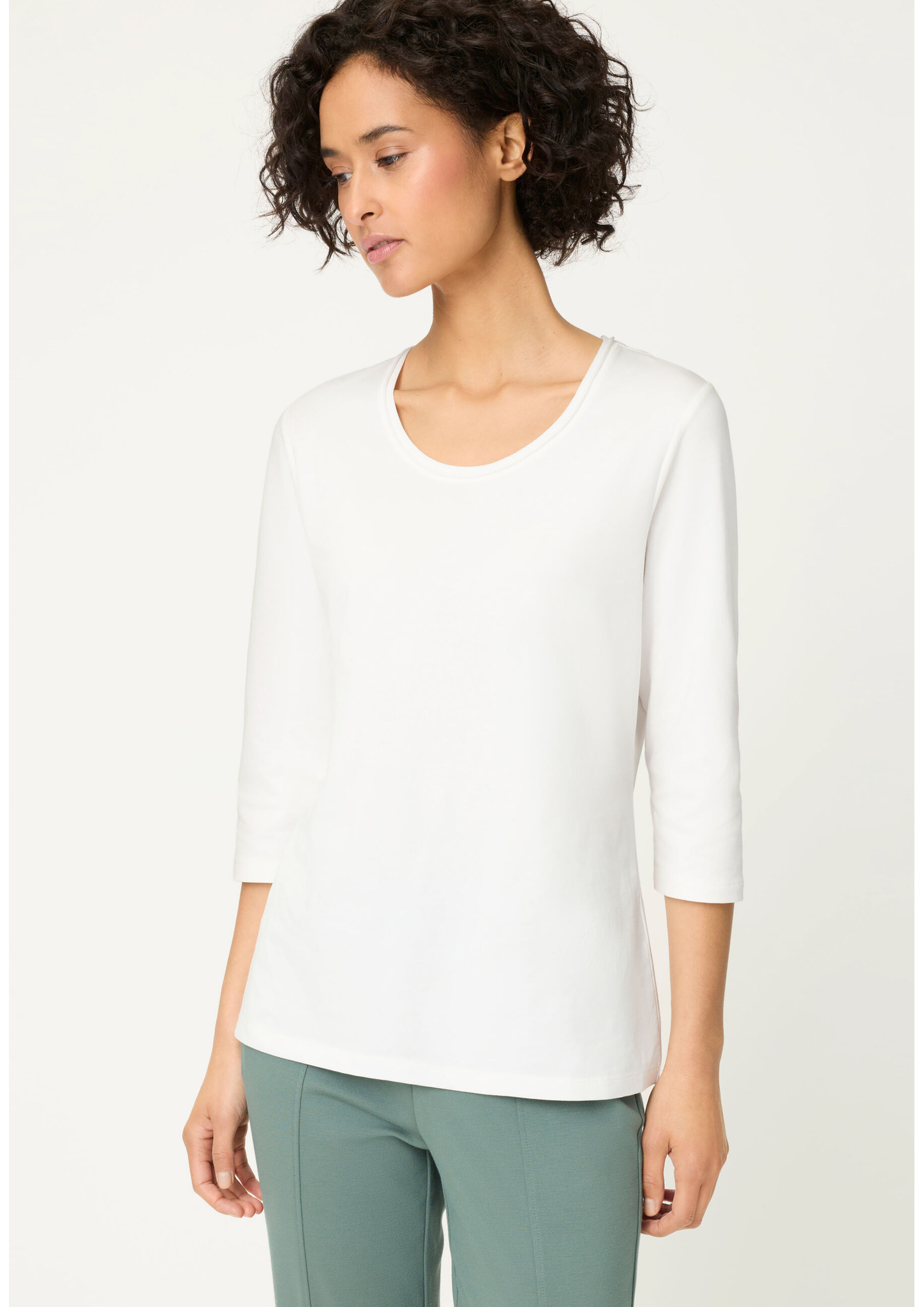 Ein vielseitiges Basic, das durch seine klaren Linien und den femininen Schnitt überzeugt. Das unifarbene Shirt mit Rundhalsausschnitt und 3/4-Ärmeln lässt sich mühelos kombinieren – ob solo getragen oder unter Jacken und Blazern. Kleine Seitenschlitze im geraden Saum sorgen für eine moderne Note und angenehme Bewegungsfreiheit. Der weiche Baumwoll-Elasthan-Mix bietet optimalen Tragekomfort und eine perfekte Passform. Länge ca. 62 cm.