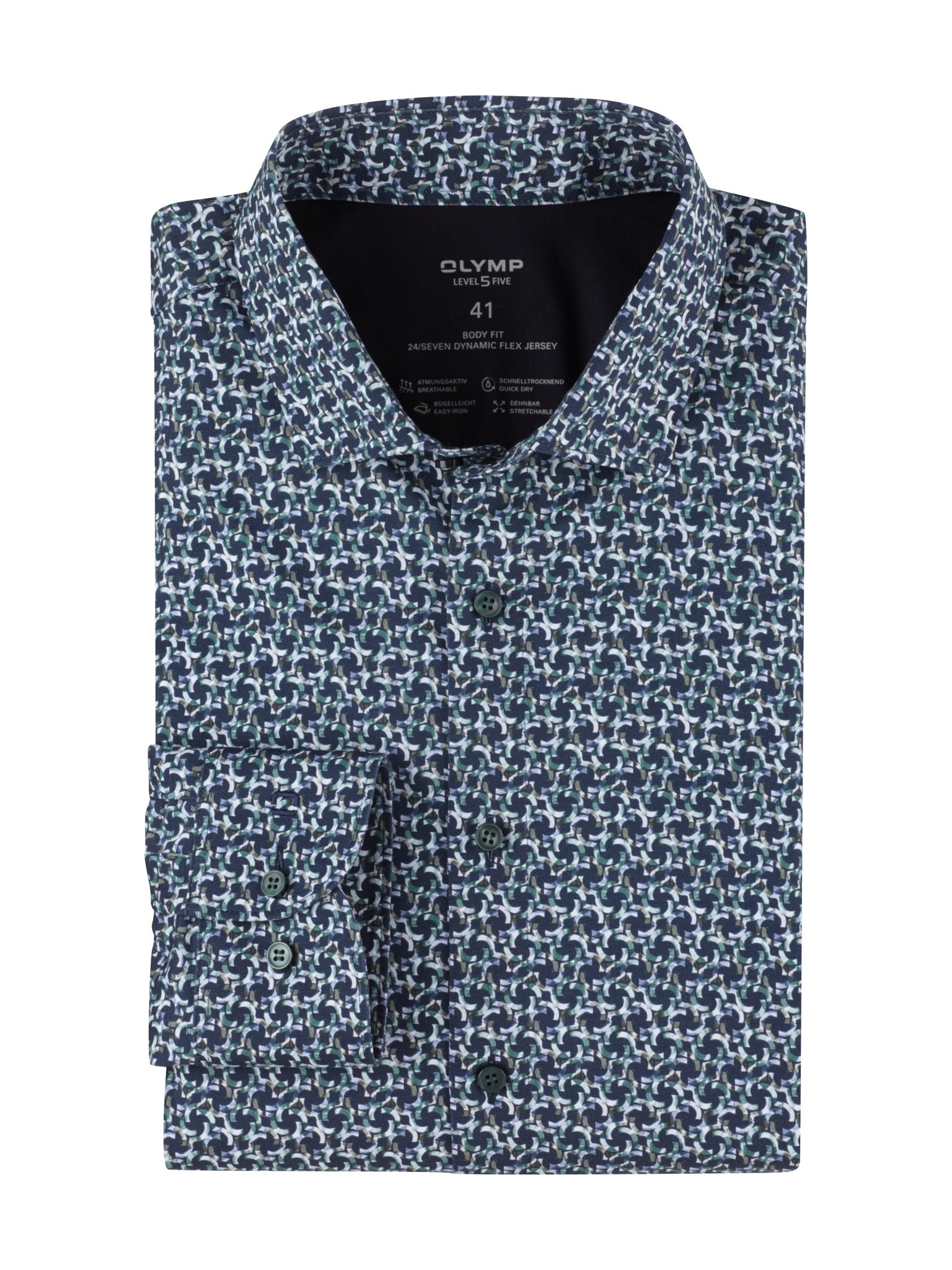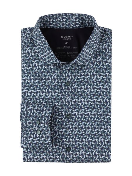 Coole Digital-Prints bieten ein tolles Update für die moderne Business-Garderobe. Wie dieses innovative OLYMP Level Five im Body-Fit-Schnitt mit Modern Kent, gefertigt aus komfortablem 24/Seven Dynamic Flex Jersey. Es ist dehnbar, atmungsaktiv, schnelltrocknend und bügelleicht. Für eine dynamische Office-Performance und trendige Optik. In Grün.