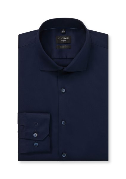 Elegantes Satinhemd für Business, Evening und festliche Anlässe. Stilsicher vollendet durch einen Royal Kent, im körperbetonten Super Slim Fit der OLYMP No. Six Linie. Für einen einwandfreien Sitz und Look auch in Bewegung ist das superfeine, edelmatte Gewebe in komfortabler Comfort-Stretch-Qualität gefertigt. Ein Essential in noblem Kobalt.