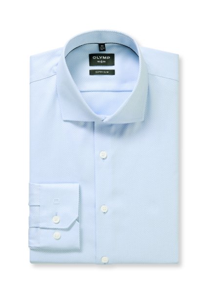 So kommt Individualität in den Look: Die Kombination aus Webeffekt und hellblauem Streifen-Design verleiht diesem eleganten OLYMP No. Six die besondere Note. Gefertigt aus reiner Baumwolle mit tollem Hautkomfort sowie zeitsparender Pflege- und Bügelleichtigkeit. Sportlich-schlanke, taillierte Silhouette, nobler Royal-Kent-Kragen.