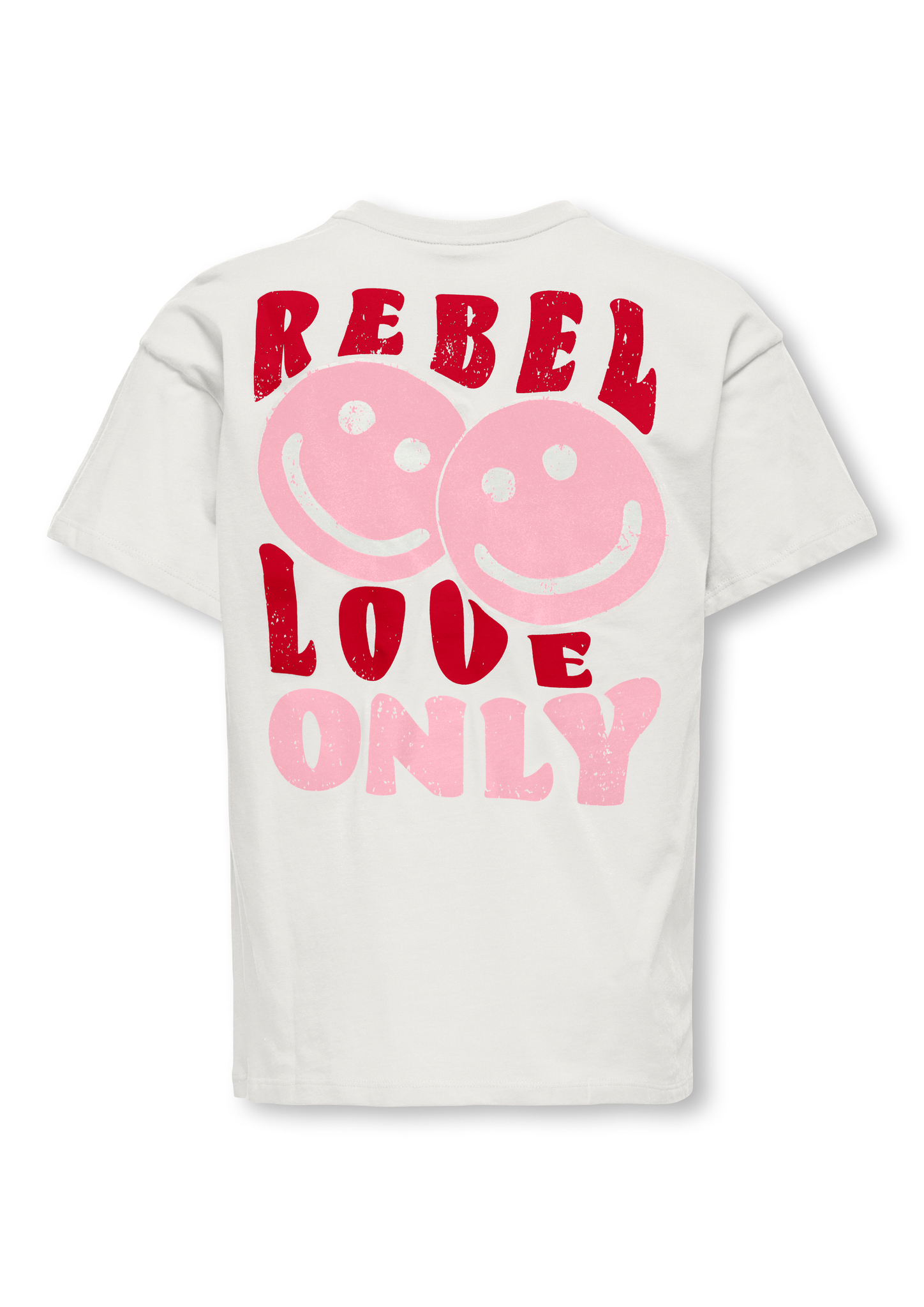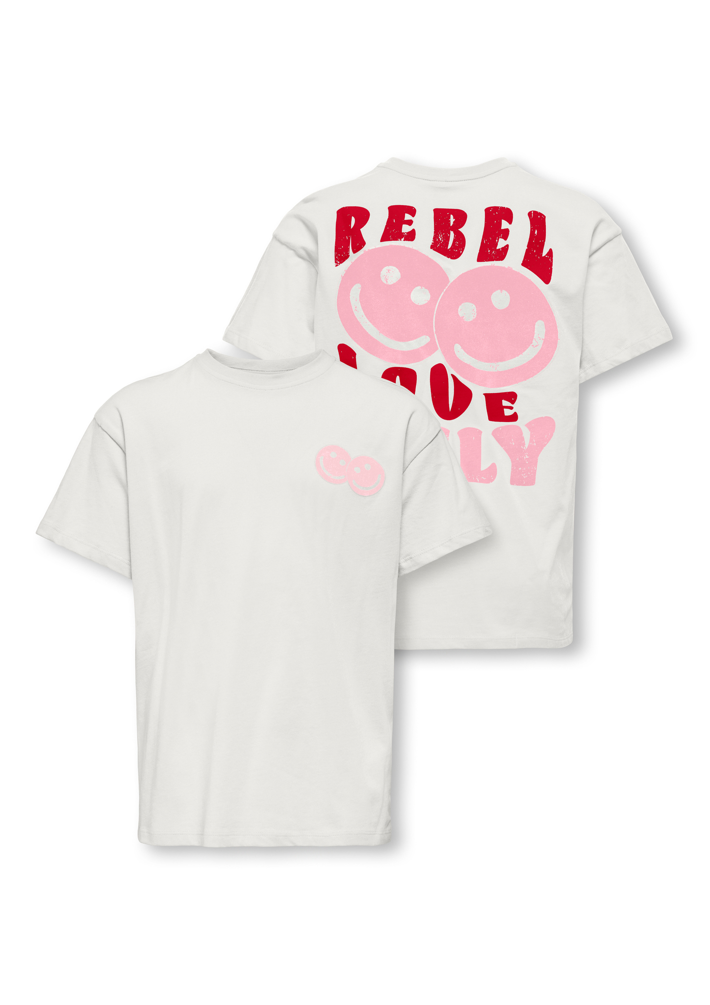 Aktualisiere die Garderobe mit einem coolen T-Shirt von ONLY GIRLS - das perfekte Oberteil für alltägliche Abenteuer! Dieser Stil verleiht ihm einen frischen und femininen Touch, ideal für Schule und Freizeit. Kombinieren Sie es mit Jeans und Turnschuhen für einen entspannten und coolen Look, der ihre Persönlichkeit ausstrahlt. Baumwolle besteht aus natürlichen Fasern, die ein weiches, atmungsaktives Material bilden. ONLY GIRLS ist für Mädchen, die es lieben, ihren Stil mit Selbstvertrauen auszudrücken. Die Kollektionen bieten die perfekte Mischung aus trendigem Denim, femininen Details und Rock'n'Roll-inspirierten Styles. Unsere Kleidung ist so konzipiert, dass sie jungen Modeliebhabern die Möglichkeit gibt, sich sowohl mit Alltagslooks als auch mit festlichen Outfits abzuheben. - Produkttyp : T-shirt - Hals : Rundhals - Ärmel : Kurzarm - Ärmel : Tief angesetzte Schulter - Print : Aufdruck auf der Vorder- und Rückseite des Produkts - Passform : Normal geschnitten - Achtung : WARNUNG! Von Feuer fernhalten.