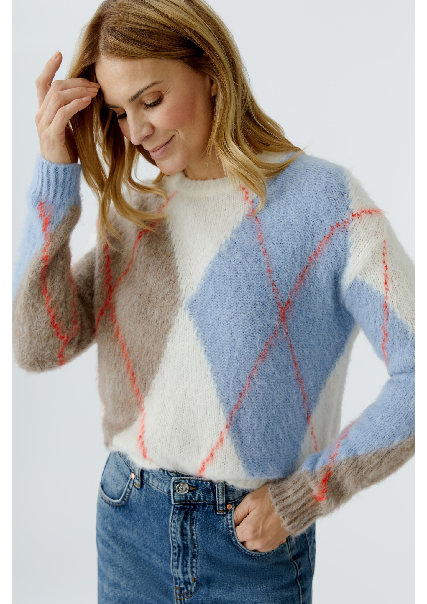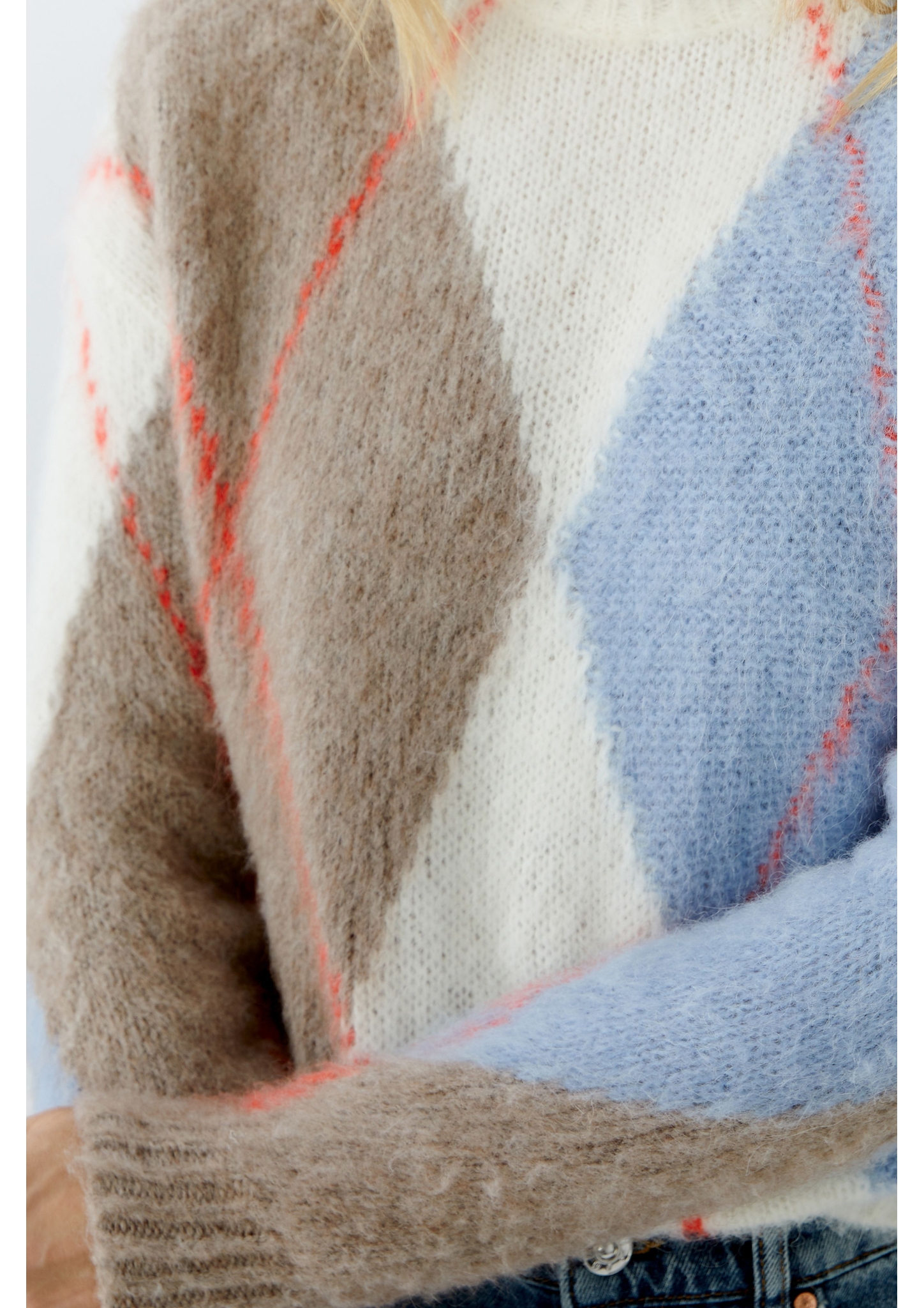 Materialzusammensetzung "Oui Kuschelpullover mit großem Argyle Design vorne und am Ärmel"