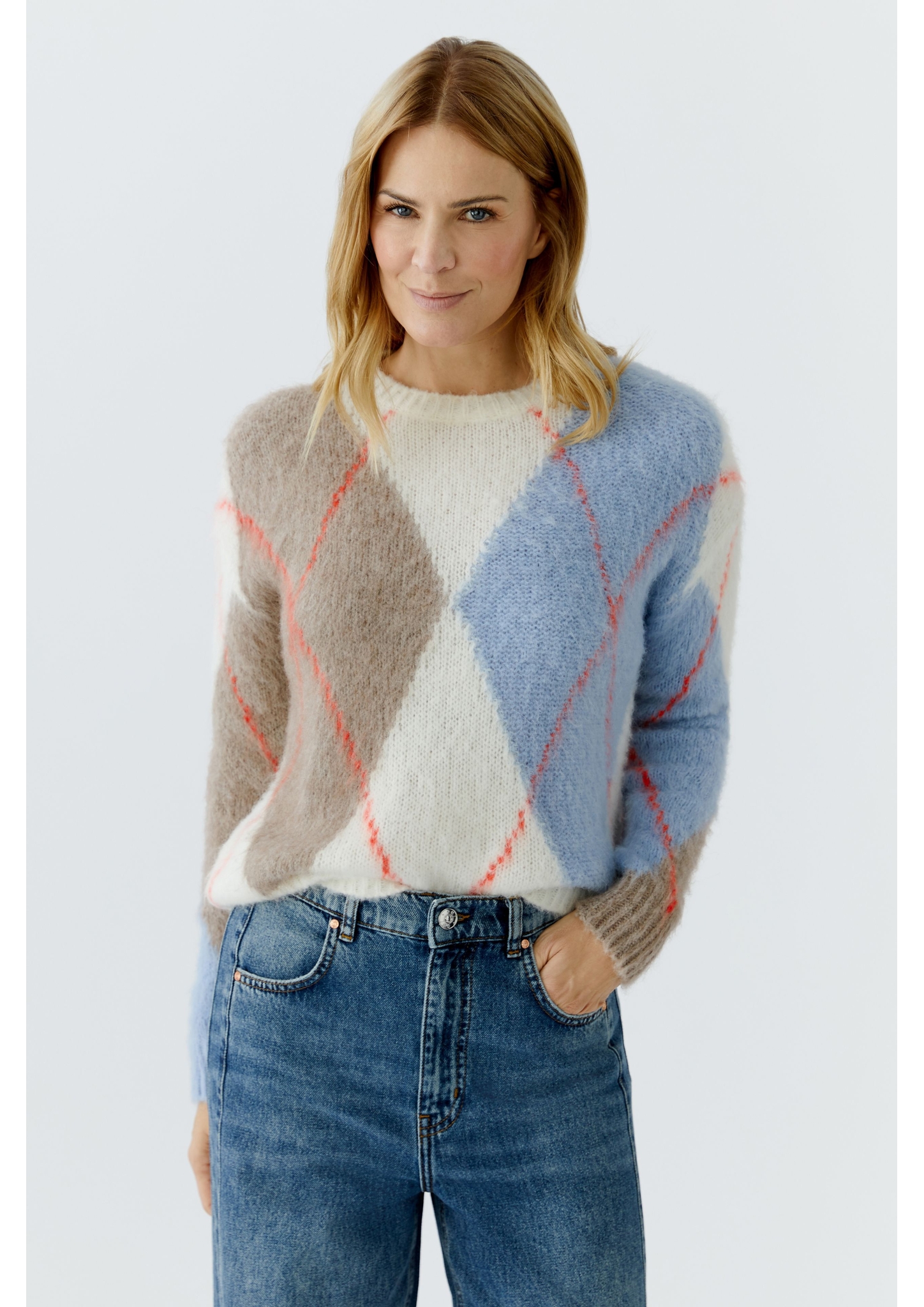 Produktinformationen "Oui Kuschelpullover mit großem Argyle Design vorne und am Ärmel"