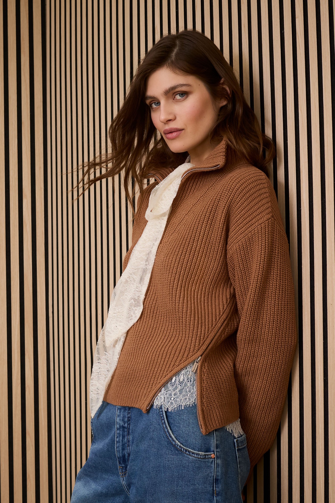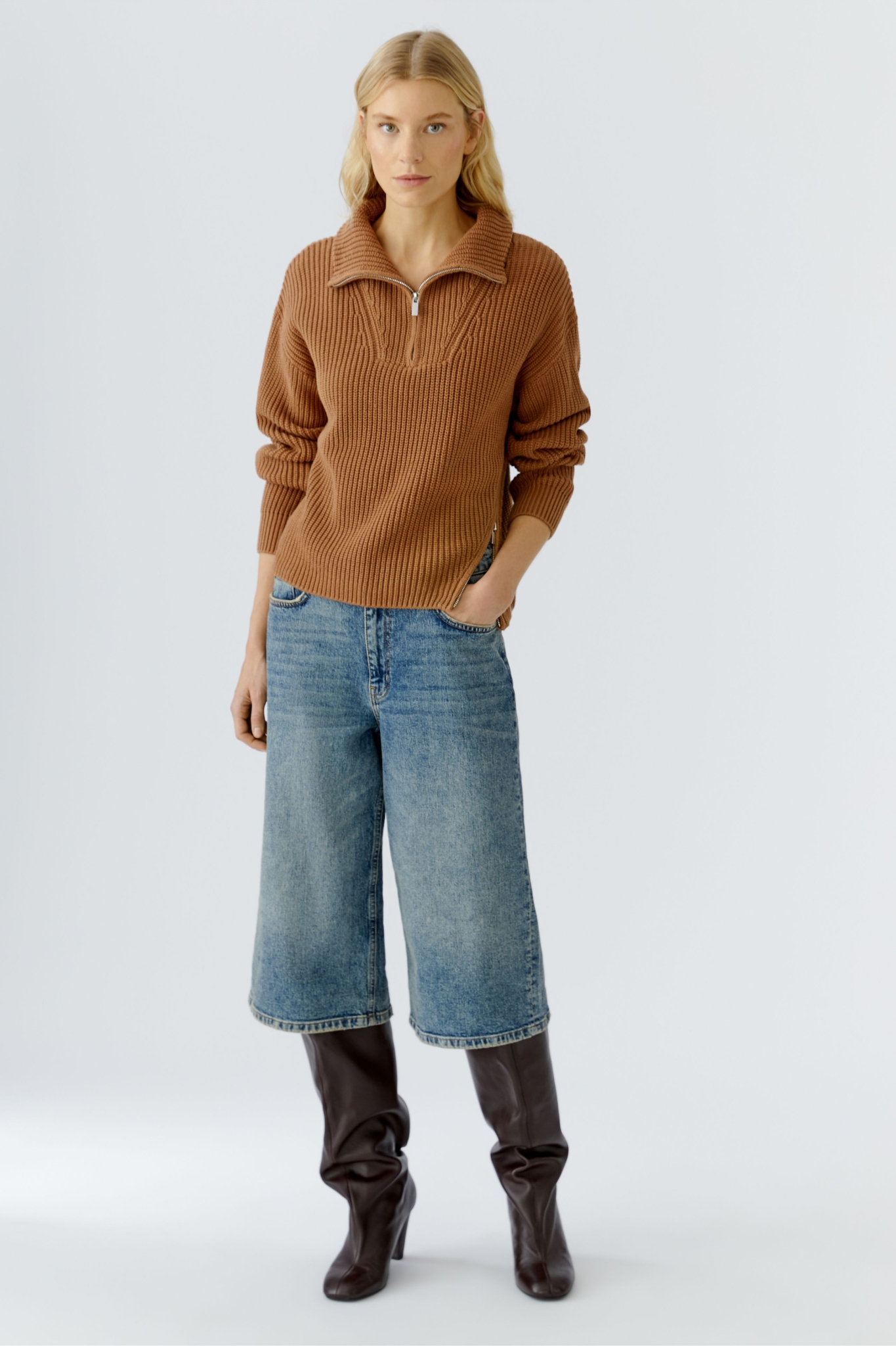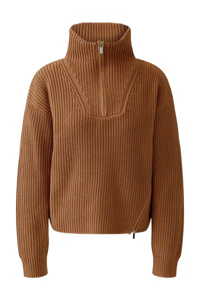 Klassischer Troyer Pullover mit Twist: schräg nach vorne verlaufender Reißverschluss am Body