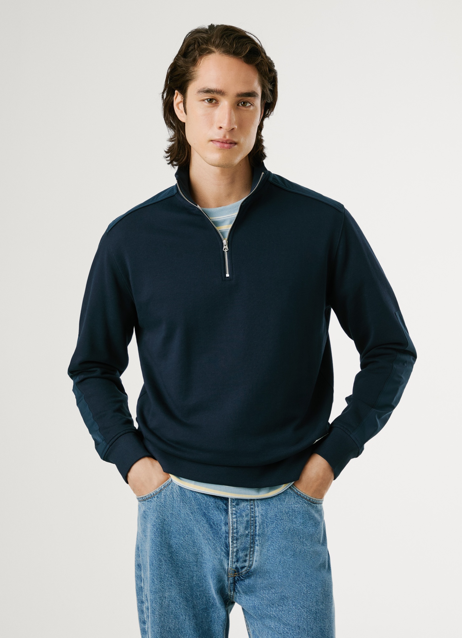 - Hoher Kragen mit halbem Reißverschluss