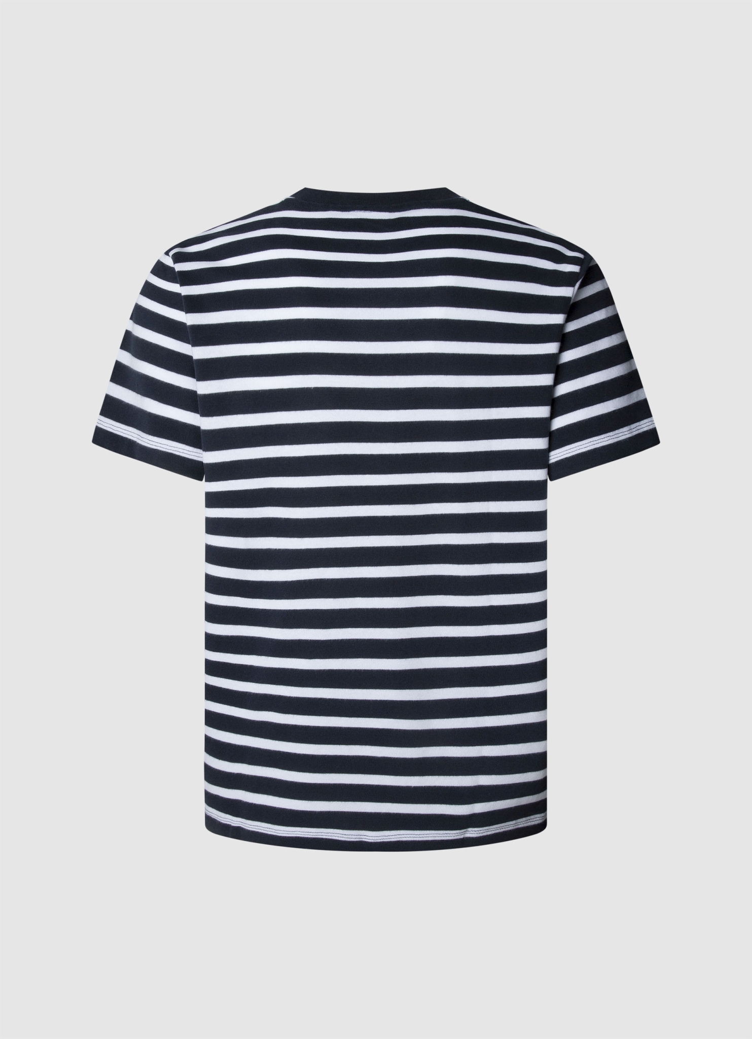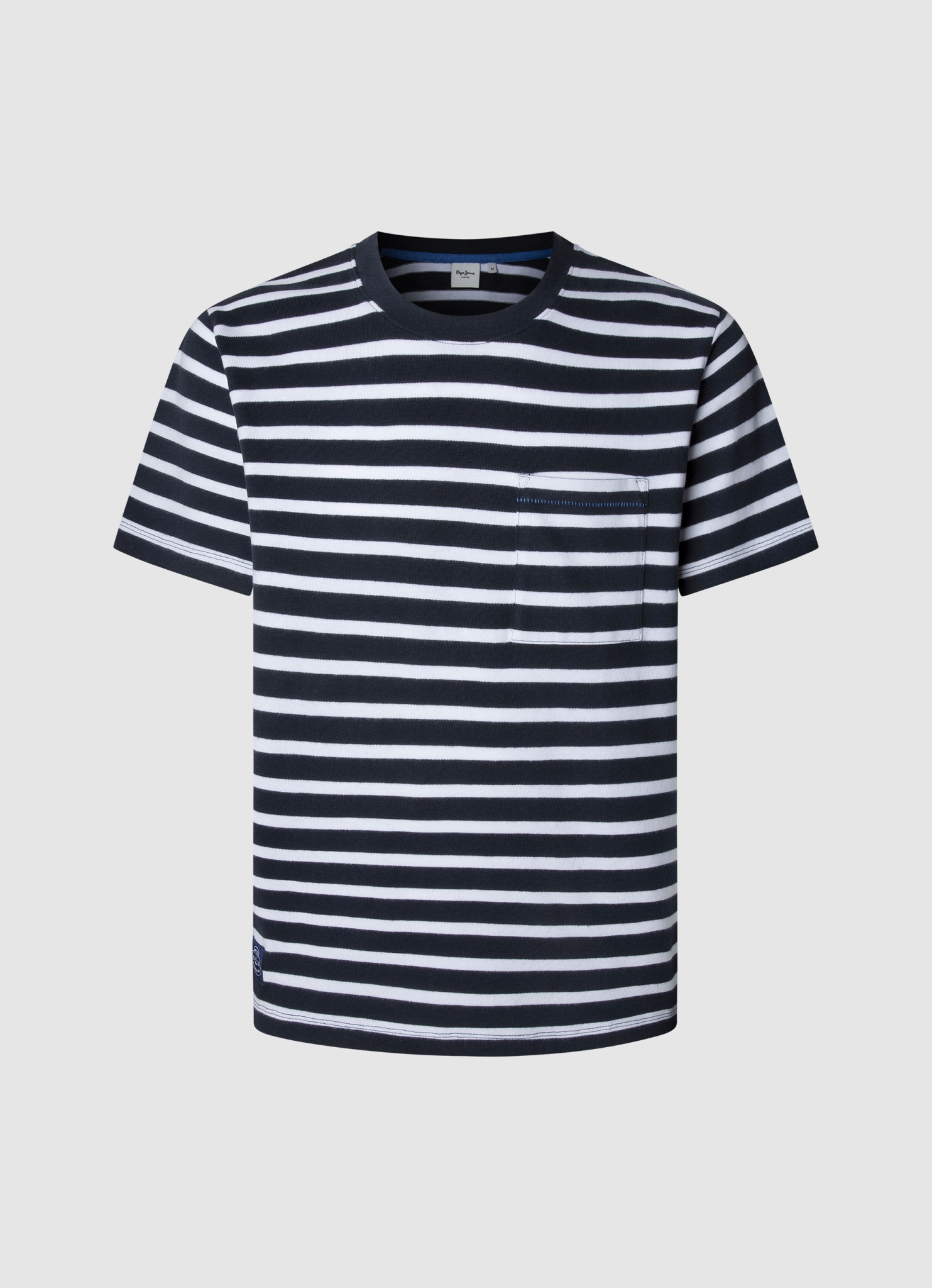 Die markanten dunkelblauen Streifen auf weißem Untergrund verleihen diesem T-Shirt einen maritimen Look mit urbanem Twist. Die reine Baumwolle fühlt sich flauschig-weich an und bietet hohen Tragekomfort für den ganzen Tag. Das verstärkende Nackenband sorgt für Formstabilität, während die aufgesetzte Brusttasche einen praktischen Akzent setzt. Der klassische Rundhalsausschnitt macht das Shirt zum vielseitigen Begleiter für Alltag und Freizeit. Pepe Jeans bringt seit 1973 die raue Energie der Londoner Portobello Road in jedes Kleidungsstück – authentisch, rebellisch und mit dem unverwechselbaren Spirit der britischen Streetwear-Szene. Unser Tipp: Tragen Sie das gestreifte Shirt zu einer dunklen Jeans und weißen Sneakern für einen lässigen City-Look.
