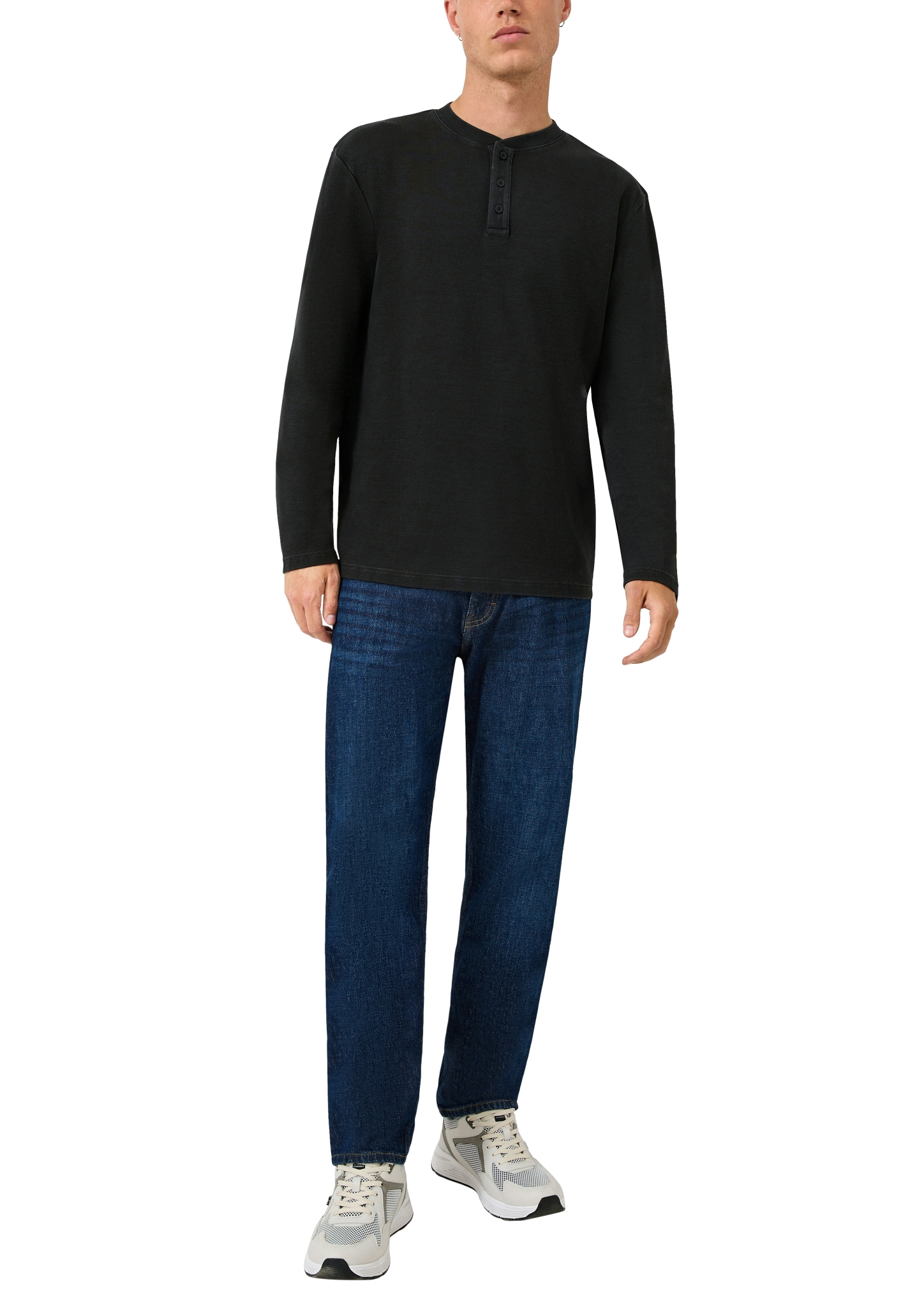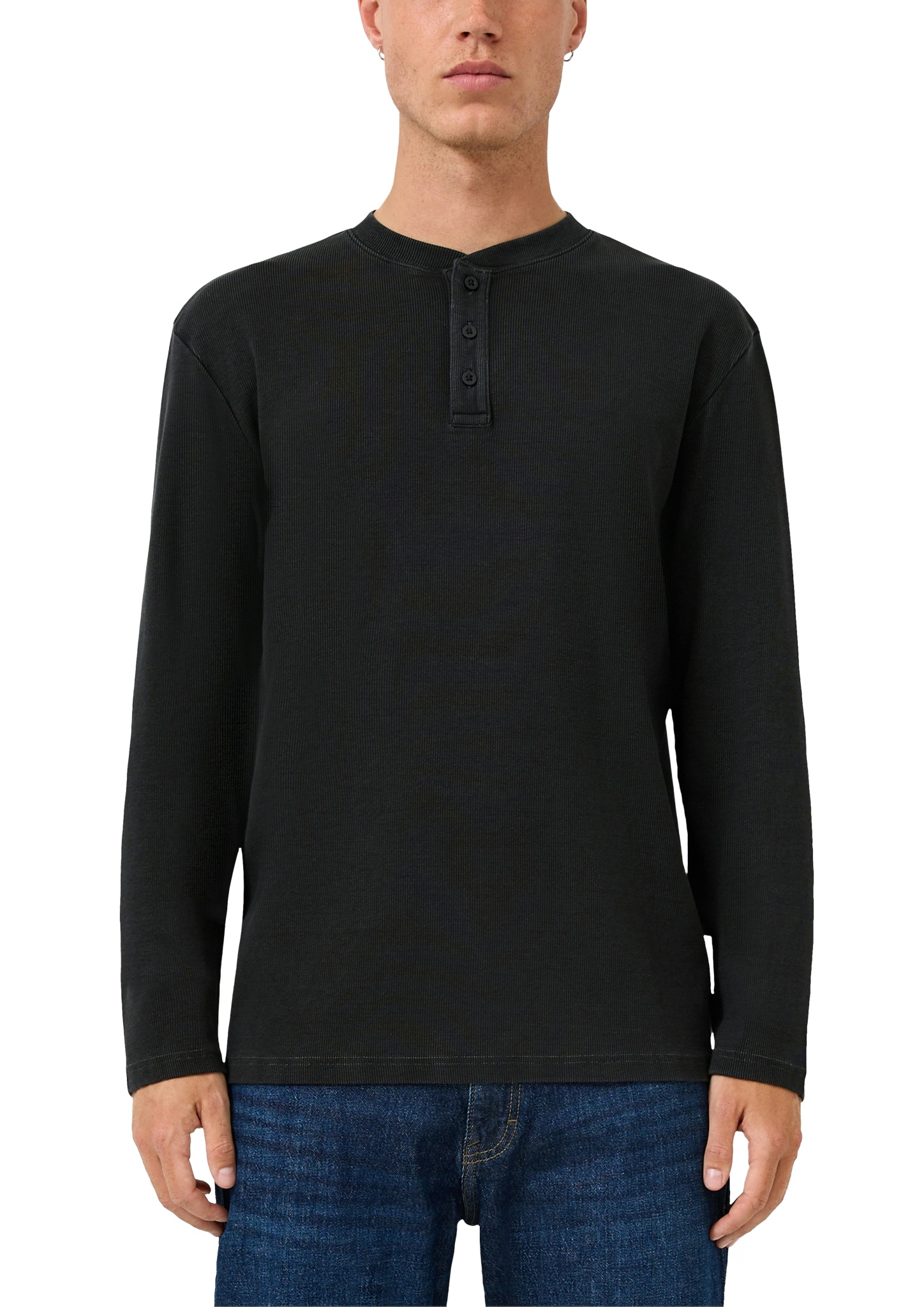 Entdecke lässigen Komfort mit unserem gewaschenen Henley-Langarmshirt. Die Rippstruktur und der Regular Fit sorgen für einen coolen Look, der sich perfekt für entspannte Tage und lässige Abende eignet. Dein neuer Lieblings-Basic für jeden Anlass!