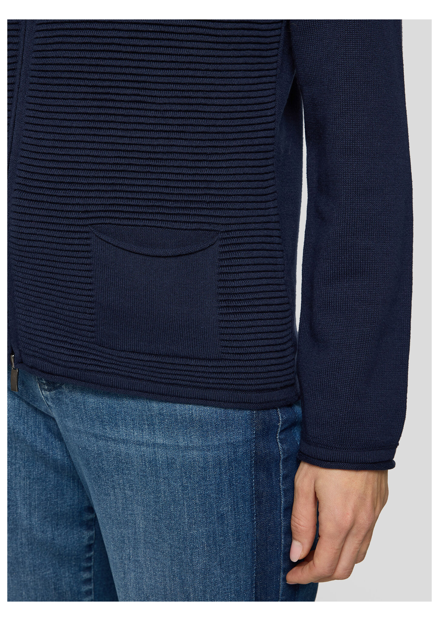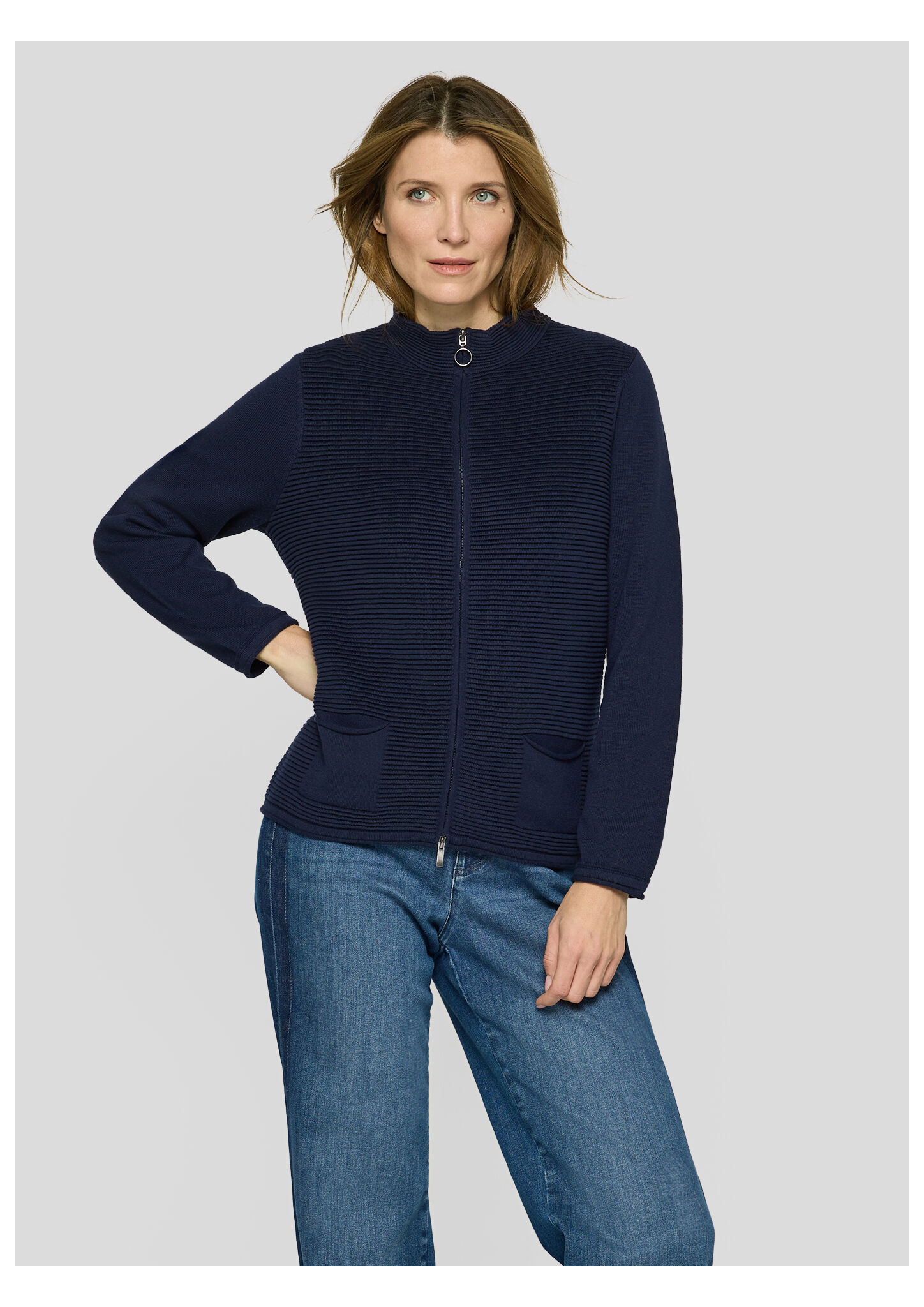 Diese Jacke überzeugt durch ihr raffiniertes Spiel mit Struktur: Die Vorderseite ist mit einer feinen Rippenstruktur gearbeitet, während Ärmel und Rückseite glatt gehalten sind. Der durchgehende Reißverschluss mit Ringzipper rundet den Look sportlich ab. Zwei aufgesetzte Taschen vorn bieten Platz für Kleinigkeiten. Die weiche Baumwollmischung liegt angenehm auf der Haut und sorgt für ein gutes Tragegefühl. Mit strukturiertem Frontbereich. Aufgesetzte Taschen vorn. Durchgehender Reißverschluss. Kleiner Stehkragen. Trageangenehme Baumwollmischung.