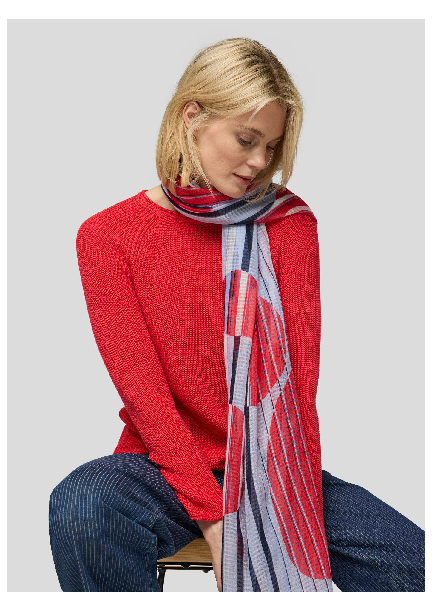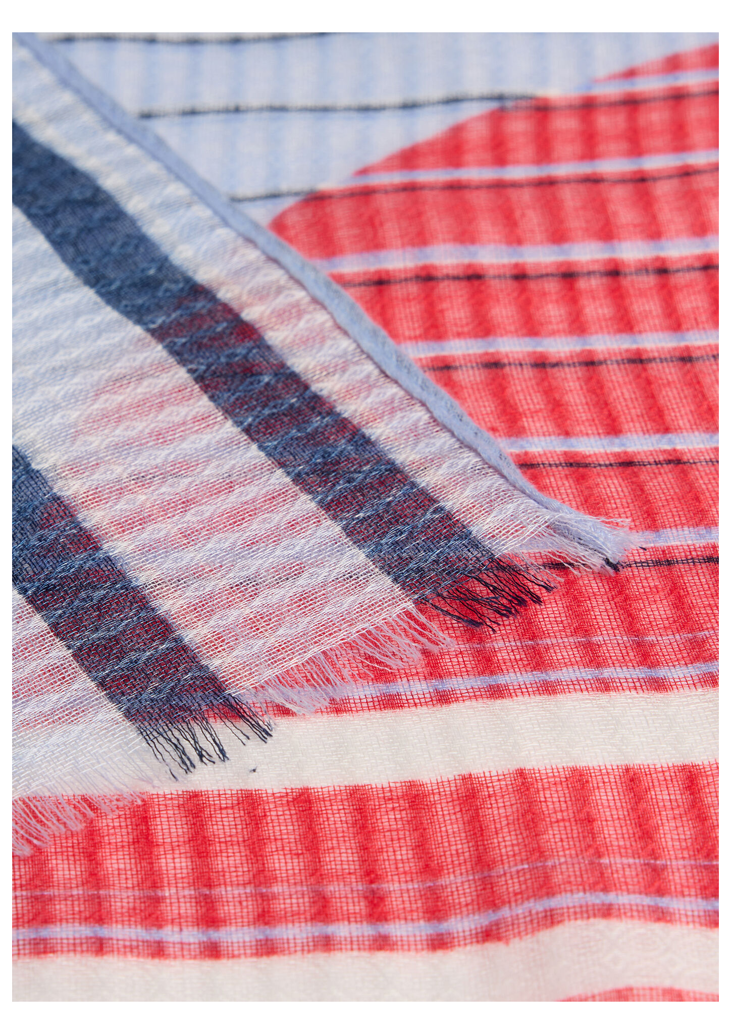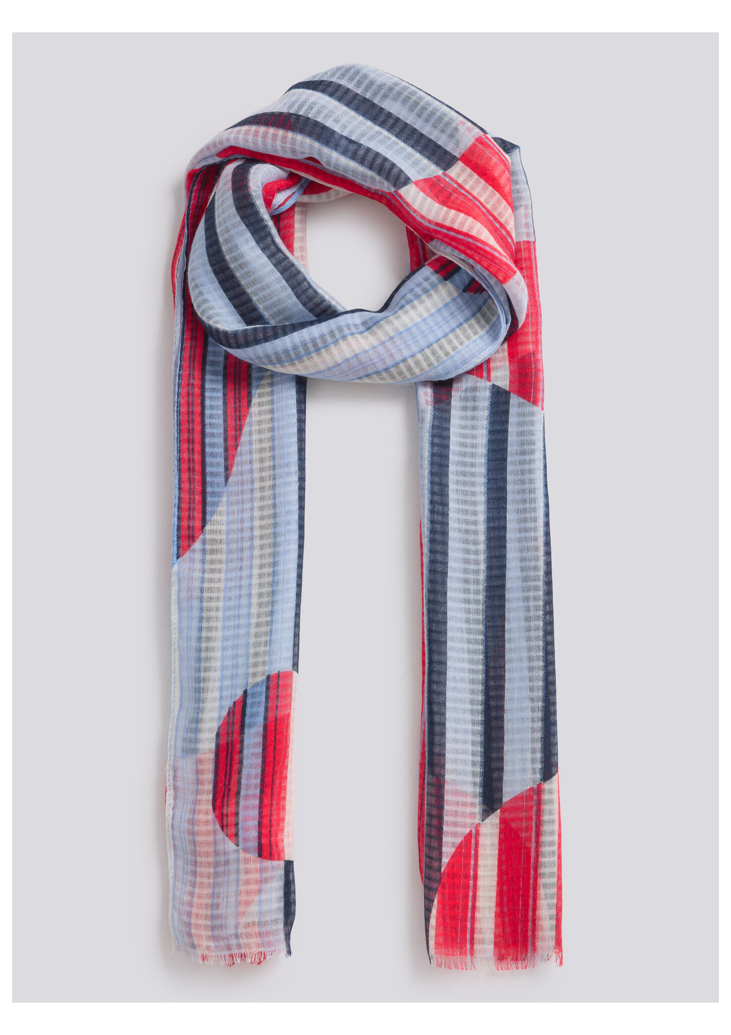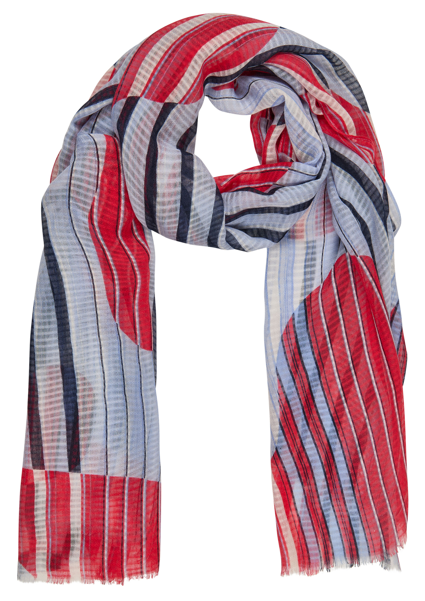 Dieser modische Schal begeistert mit seinem auffälligen Streifenmuster und den grafischen Farbblöcken in Blau, Rot und Weiß. Das leichte Material sorgt für angenehmen Tragekomfort und lässt sich vielseitig kombinieren. Perfekt für die Übergangszeit oder als stilvolles Accessoire zu verschiedenen Outfits. Leicht und angenehm zu tragen. Auffälliges Streifen- und Farbblockdesign. Vielseitig kombinierbar für verschiedene Outfits. Ideal für die Übergangszeit.