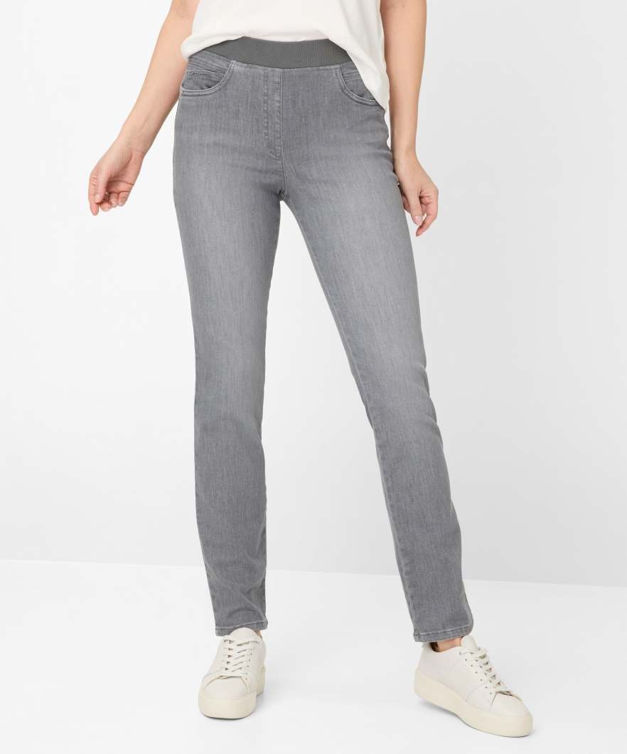 Der Style PAMINA von Raphaela ist ein Klassiker für Damen. Im Zusammenspiel mit Sneakern oder Loafern rundet diese Five-Pocket-Jeans als Kombinationstalent jedes Outfit ab. Die Slim Fit Damenhose überzeugt mit schlankem Beinverlauf und hoher Taille. Unkompliziert ergänzt mit formschönem Jerseybund - einfach reinschlüpfen und gut aussehen. Durch die aufgesetzten Gesäßtaschen erhält die Hose eine typische Note. Sie ist zusätzlich mit raffinierten Swarovski-Elementen geschmückt. Die extrem elastische Dynamic-Qualität garantiert Ihnen uneingeschränkte Bewegungsfreiheit mit optimalem Dehn- und Rücksprungsverhältnis. Für einzigartige Authentizität steht darüber hinaus der Denim und vereint das charakteristische Warenbild mit hoher Strapazierfähigkeit. Bei dieser Five-Pocket-Jeans bietet der nachhaltige, unempfindliche und hautsympathische Baumwollmix zudem ein vorzügliches Tragegefühl.