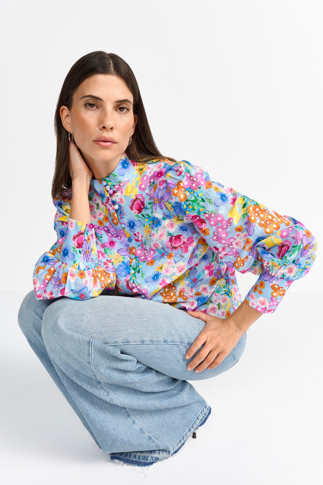 Diese Retro-Bluse wird mit einem verspielten Blumenprint in sanften Farben und Raffungen an den... mehr