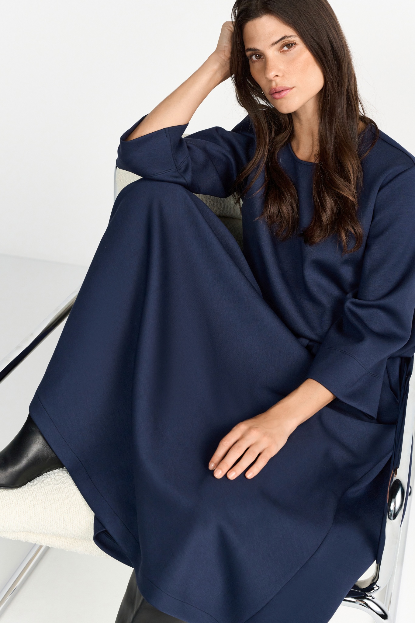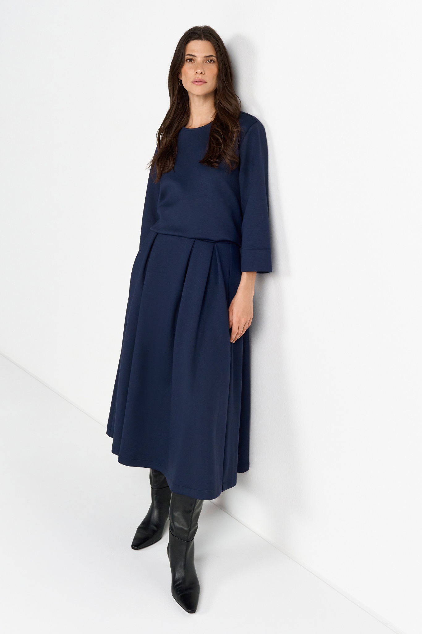 Dieser Midirock in Navy aus softem Jersey steht für pure Eleganz! Die Kellerfalte formt eine... mehr