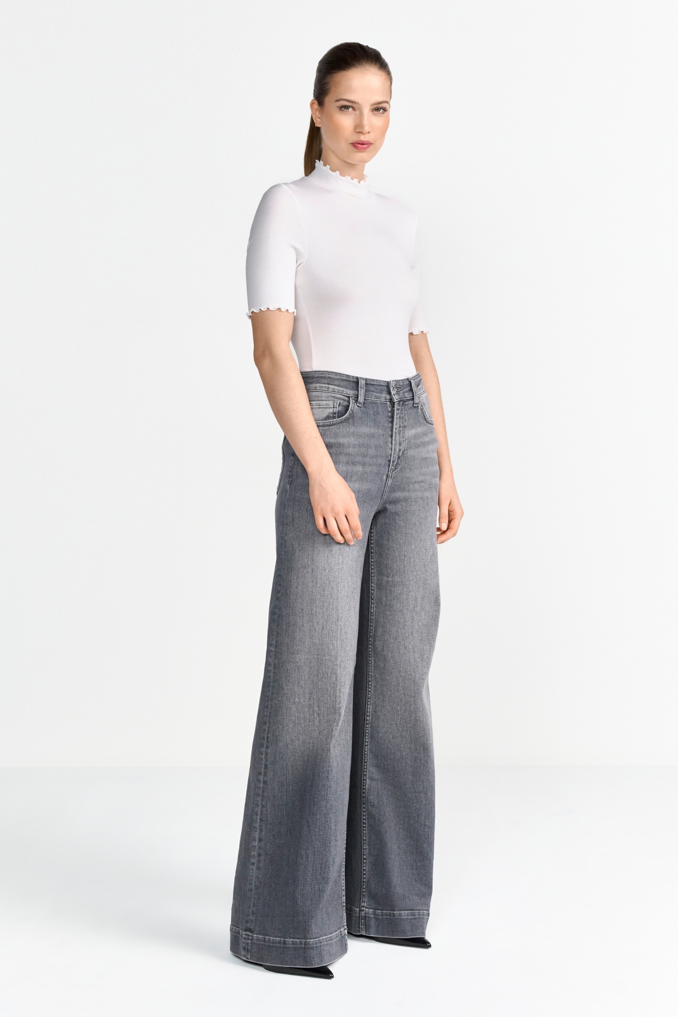 Das romantische T-Shirt mit zartem Frill-Kragen verleiht deinem Outfit eine feminine Note! Es ist perfekt für einen stilvollen, lässigen Look zu jedem Anlass.