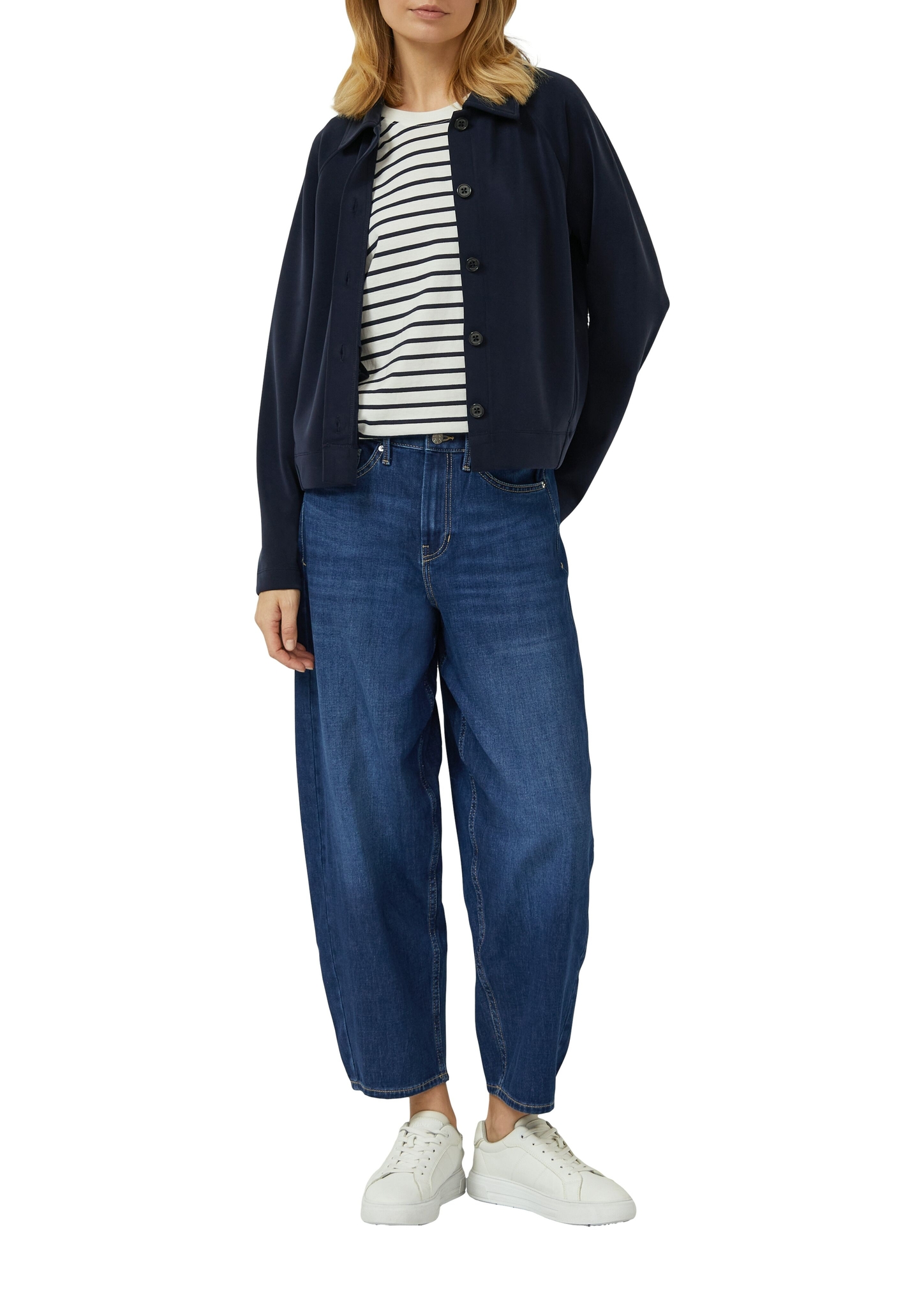 Diese Ankle-Jeans mit High Rise und angesagtem Barrel Leg bringt frischen Wind in deinen Kleiderschrank! Der Regular Fit sitzt herrlich bequem, während die klassische 5-Pocket-Form absolut alltagstauglich bleibt. Ob beim Brunch mit Freundinnen, auf der Party oder zu festlichen Anlässen – diese vielseitige Denim-Hose macht einfach jeden Look mit und lässt sich spielend leicht kombinieren.