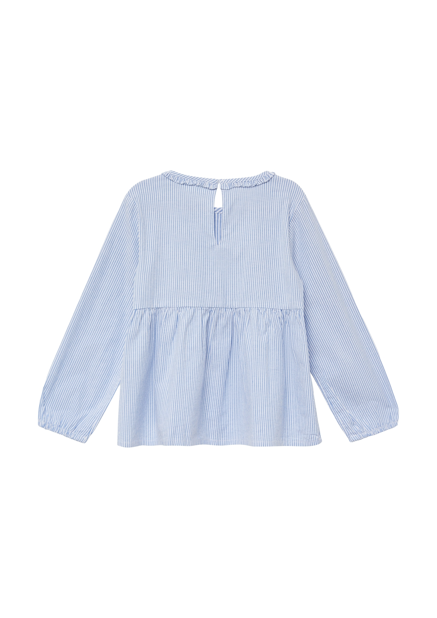 Ausgestellte Bluse in gestreiftem Baumwollmix-Design mit verspielten Schmucksteinen. Praktische Gummibündchen und Knopfverschluss machen An- und Ausziehen zum Kinderspiel. Perfekt für Schule oder besondere Anlässe.