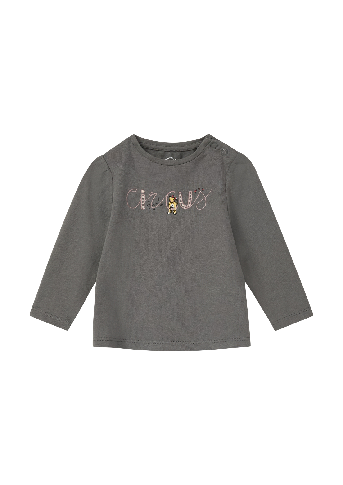 Dieses langärmlige Jerseyshirt mit A-Linien-Schnitt verzaubert durch seinen glitzernden Frontprint. Der weiche Baumwollstoff und die Puffärmel sorgen für Komfort. Praktische seitliche Druckknöpfe erleichtern das An- und Ausziehen. Ein niedliches Outfit für Babys erste Entdeckungstouren!