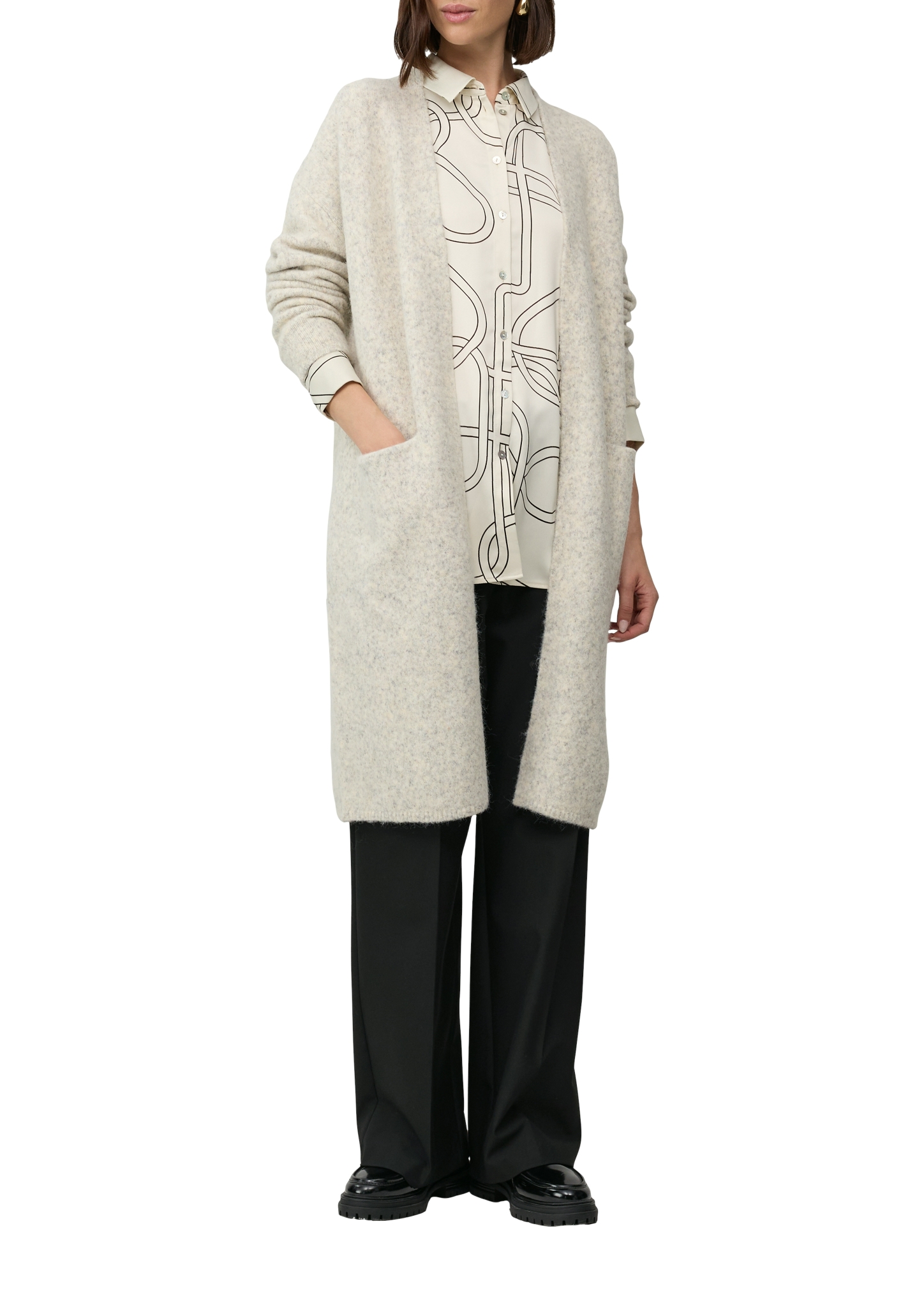 Produktinformationen "s.Oliver BLACK LABEL Angerauter Long-Cardigan aus Wollmix"